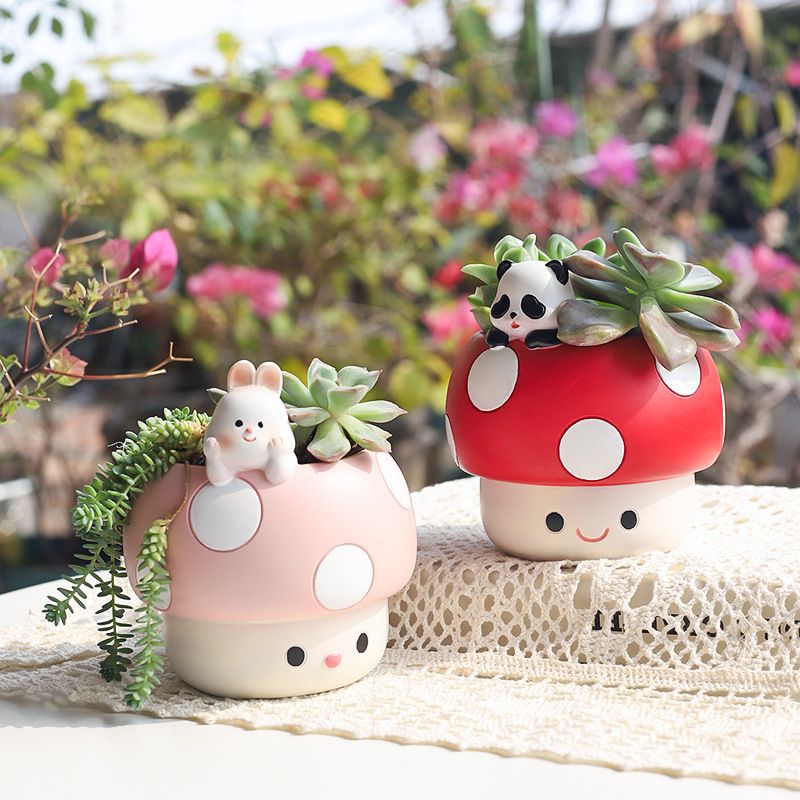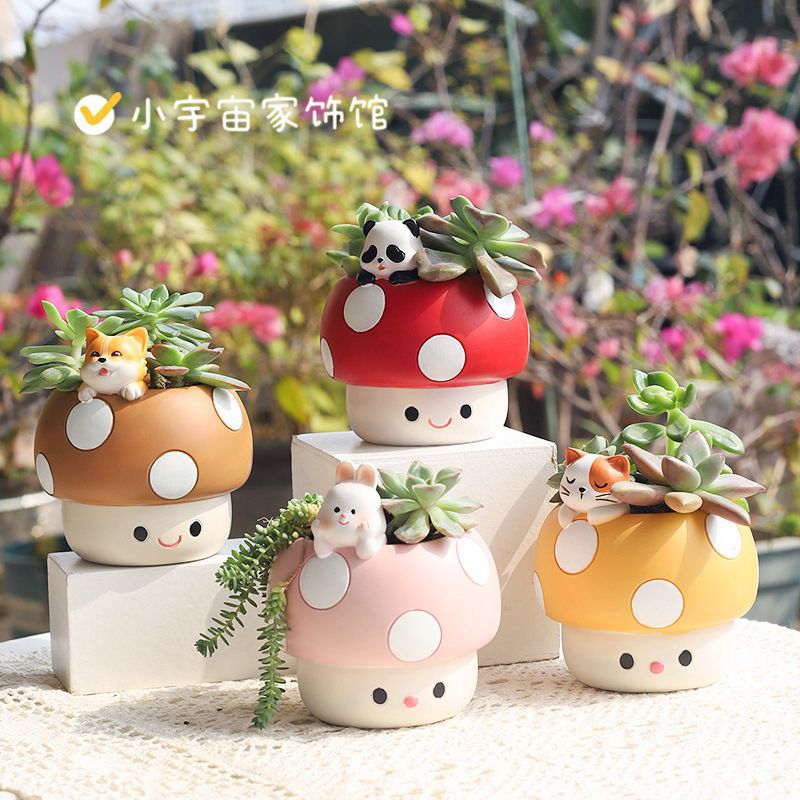 Мультяшный грибной кролик корги, забавный садовый цветочный горшок из смолы, креативная рабочая станция, настольный декоративный цветочный горшок для суккулентов