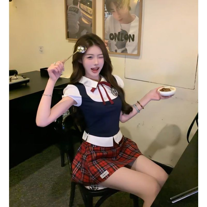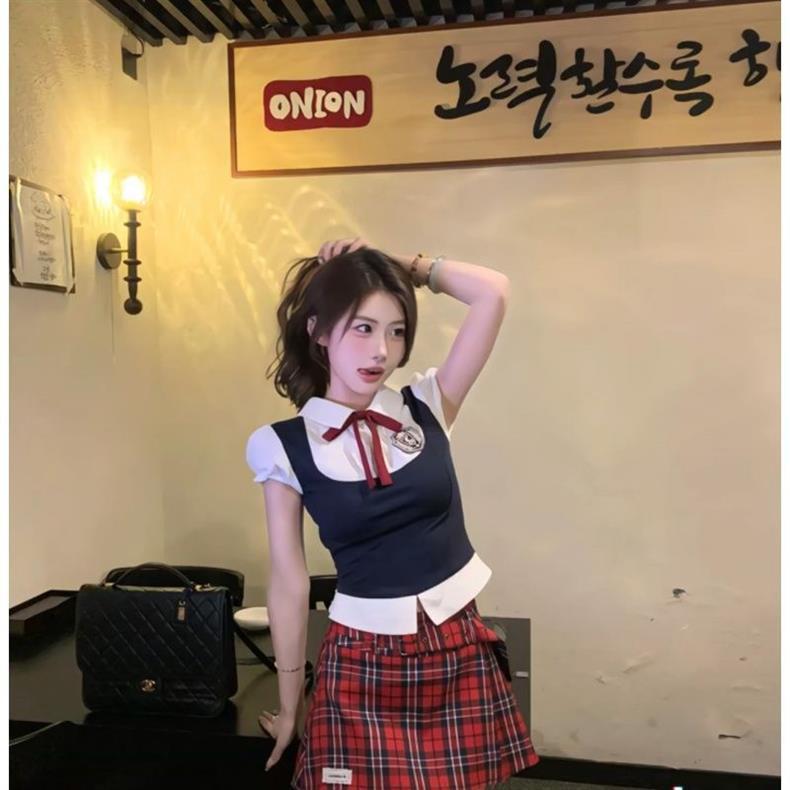 Плюс размер, летняя новая жилетка MM, рубашка из двух частей, тонкая клетчатая юбка с высокой талией, костюм в консервативном стиле