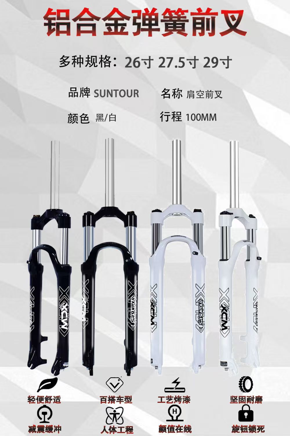 XCM自行车前叉26 27.5 29寸铝合金机械锁死预压调节弹簧减震快拆