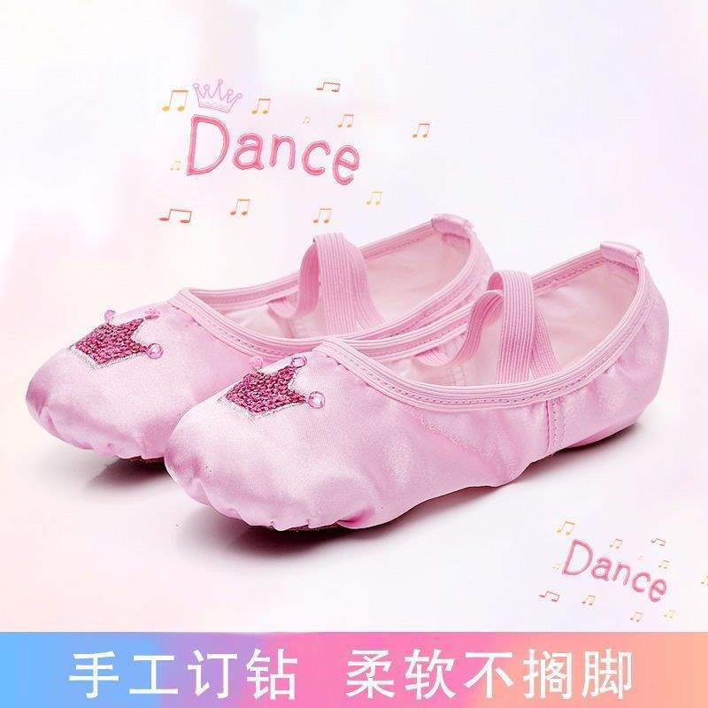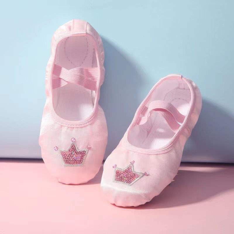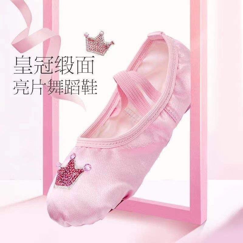 Танцевальная обувь для женщин на мягкой подошве для занятий детскими танцами для девочек, детская корона, розовое тело для малышей, китайский балет