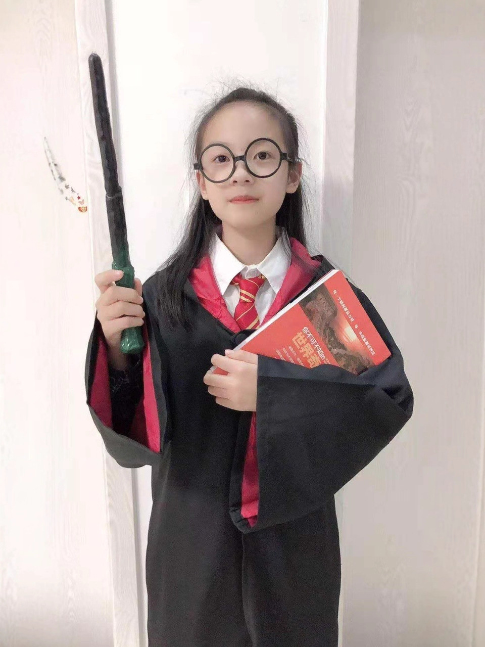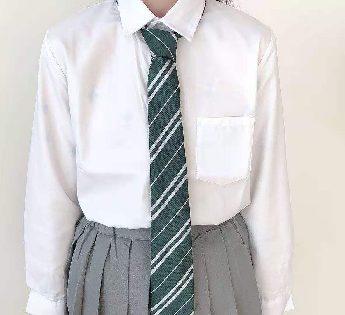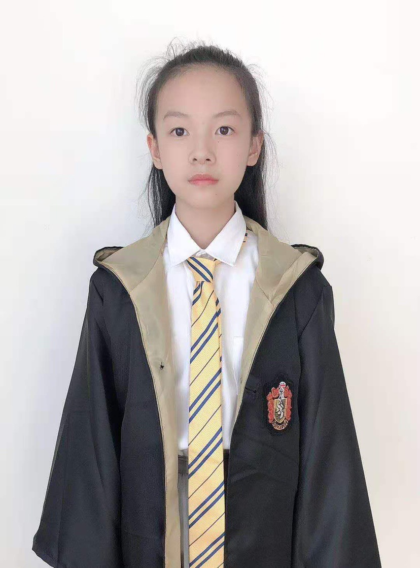 Красный халат Гриффиндора; Зеленый халат Слизерина; Голубой халат Рavenclaw; желтый халат; рубашка с длинным рукавом; серая юбка; галстук; волшебная палочка; шарф
