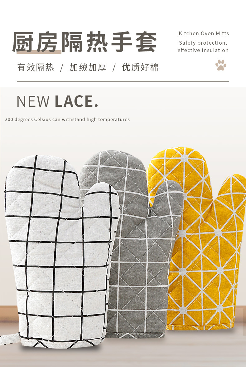 微波炉防烫手套耐高温耐磨厨房隔热白格黄格烤箱黑格西瓜烘焙现货