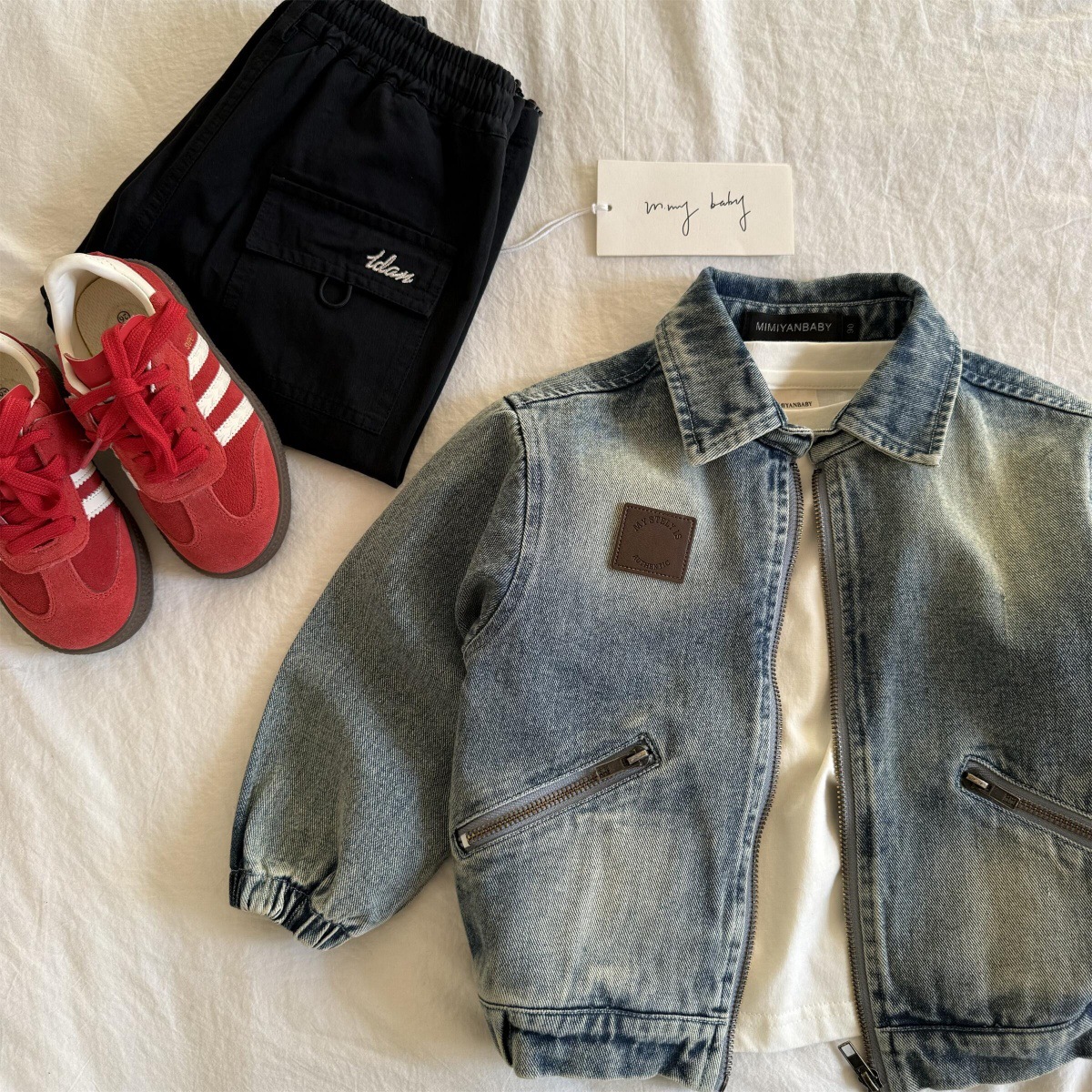 儿童牛仔外套2025春秋男女童日系牛仔夹克中小童宝宝洋气翻领上衣