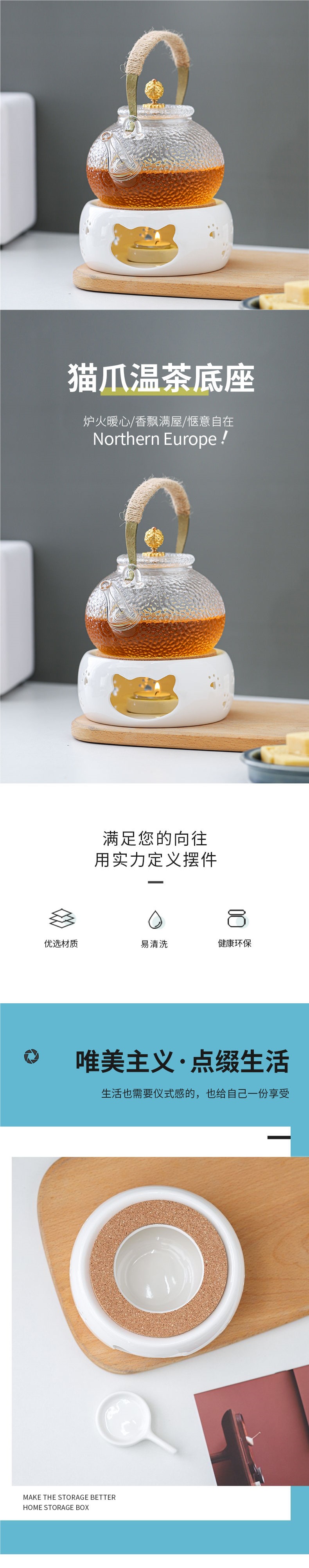 Чайная плита с подогревом фруктов, чайник с основанием в виде кошачьей лапки, ресторанный стеклянный чайник для заваривания цветочного чая, домашняя изоляция, керамическая, для отеля