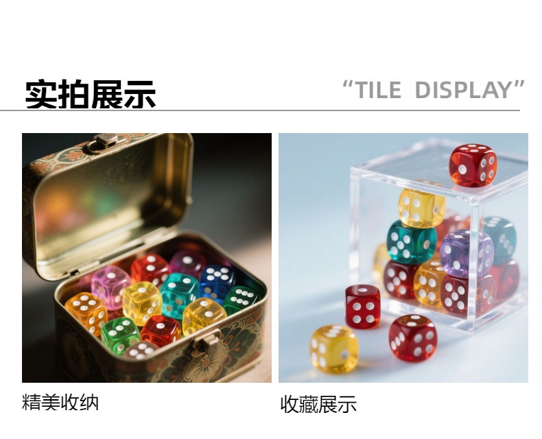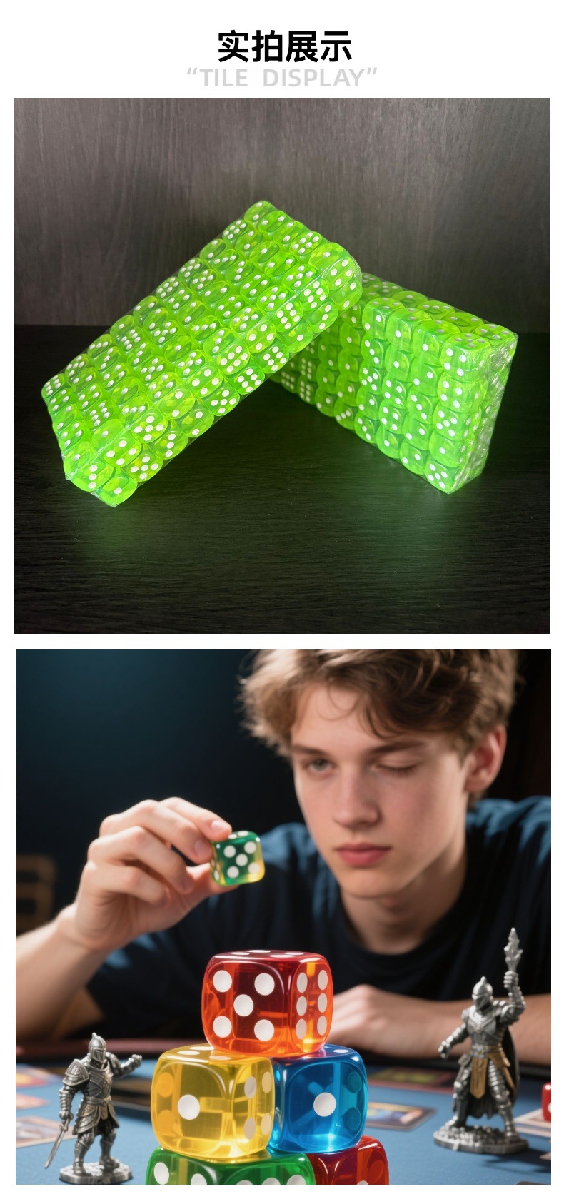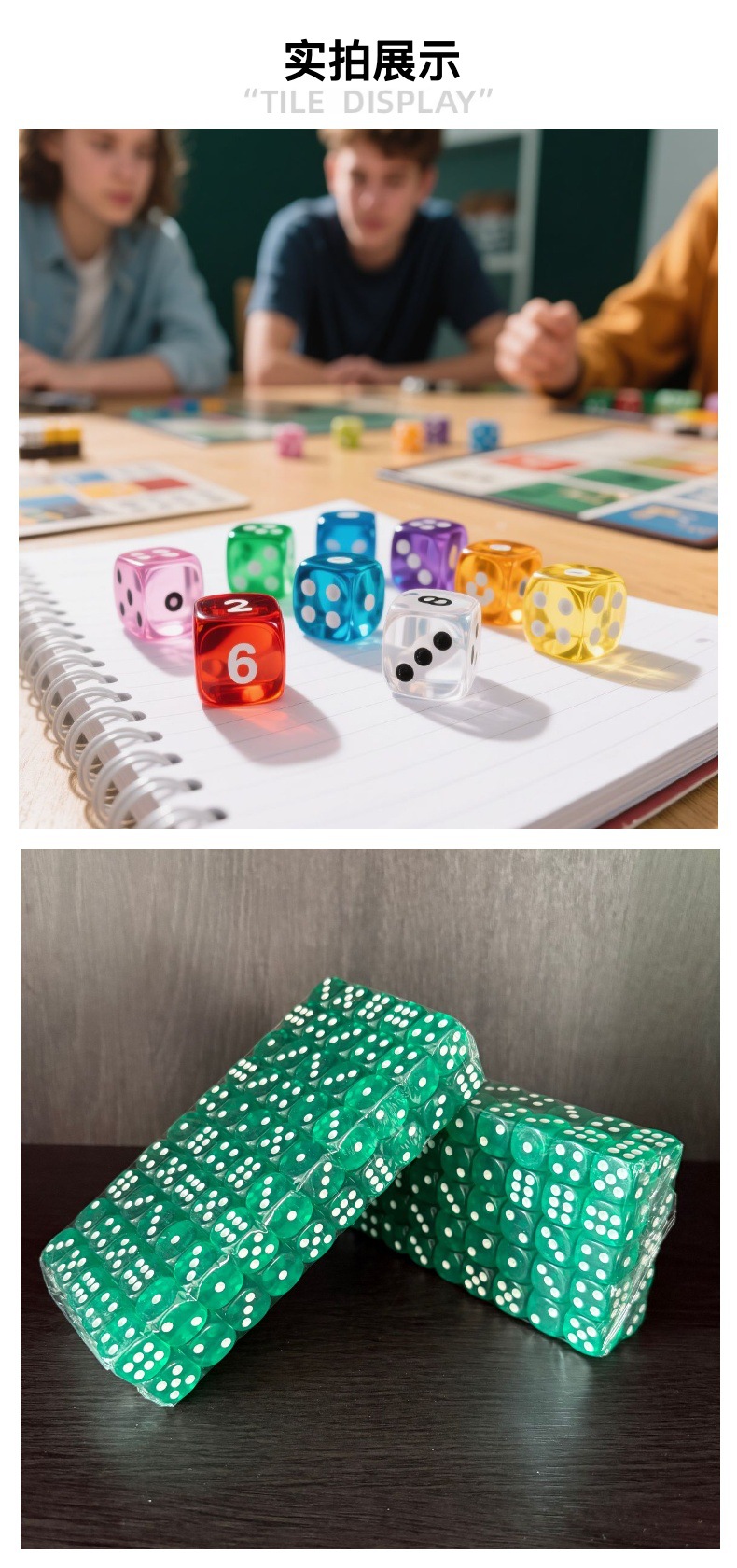 选择我们的 16mm 透明彩色亚克力骰子,为您的游戏和教学时光注入无限活力与惊喜!快来开启不一样的游戏体验吧
