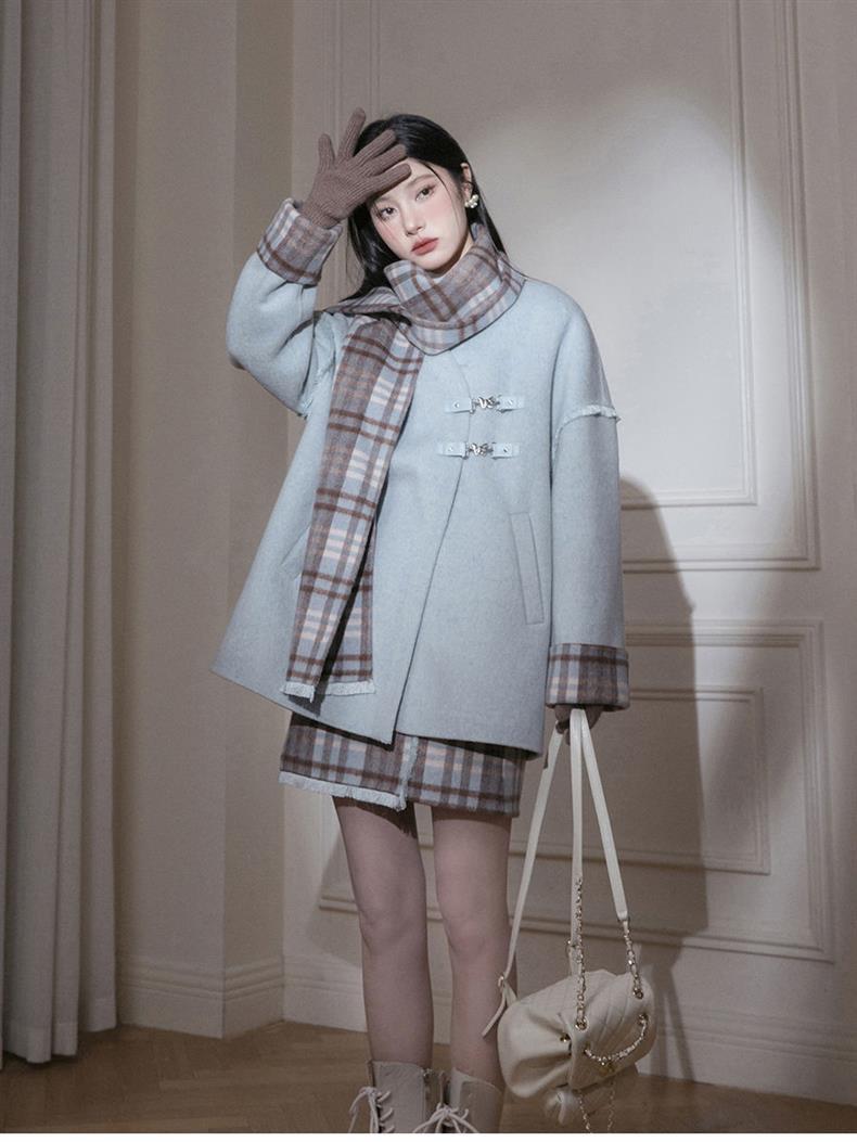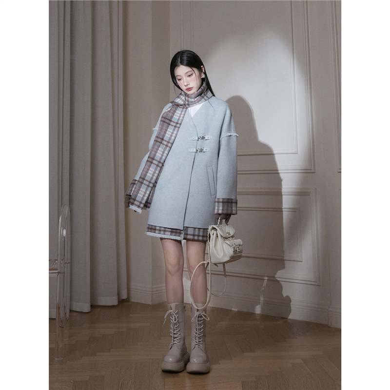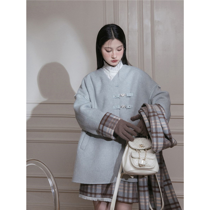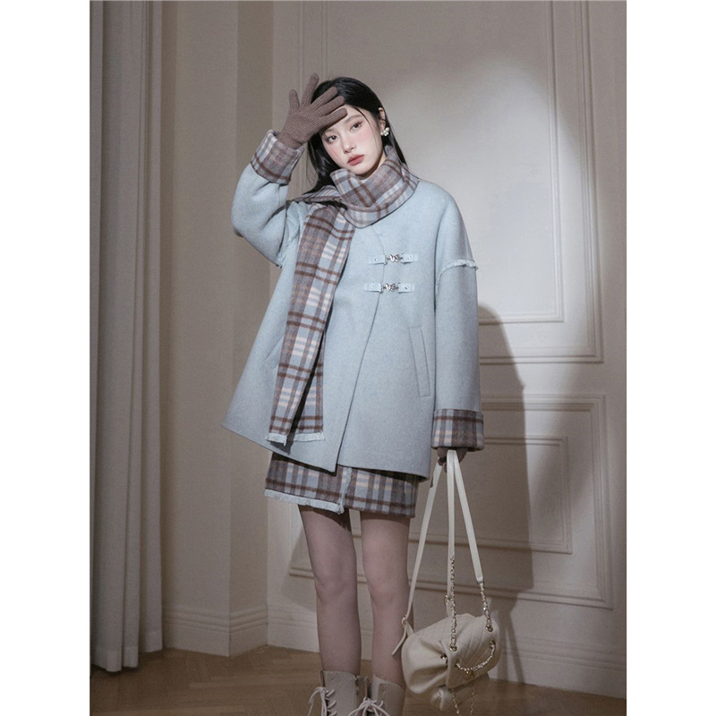 Высококачественный модный комплект из шерстяного пальто и юбки во французском стиле, новый зимний элегантный нишевый комплект из двух предметов: топ и юбка.