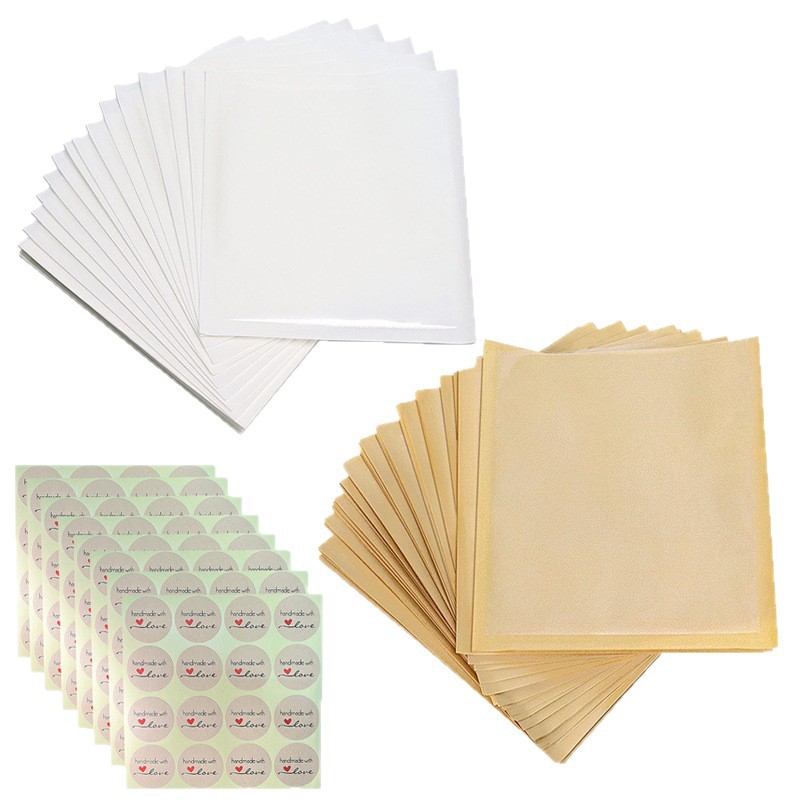 Желтый; полупрозрачный бумажный полиэтиленовый пакет 18×19см; крафт-бумага; Белый; полупроницаемый бумажный полиэтиленовый пакет 18×19см; Коричневая упаковочная бумага; Наклейка: 16 наклеек/лист, 3,8 см; полупрозрачный бумажно-пластиковый пакет 18×19 см; крафт-бумага; Наклейка B, 16 наклеек/лист, 3,8 см; полупрозрачный бумажный пластиковый пакет 18×19 см; крафт-бумага