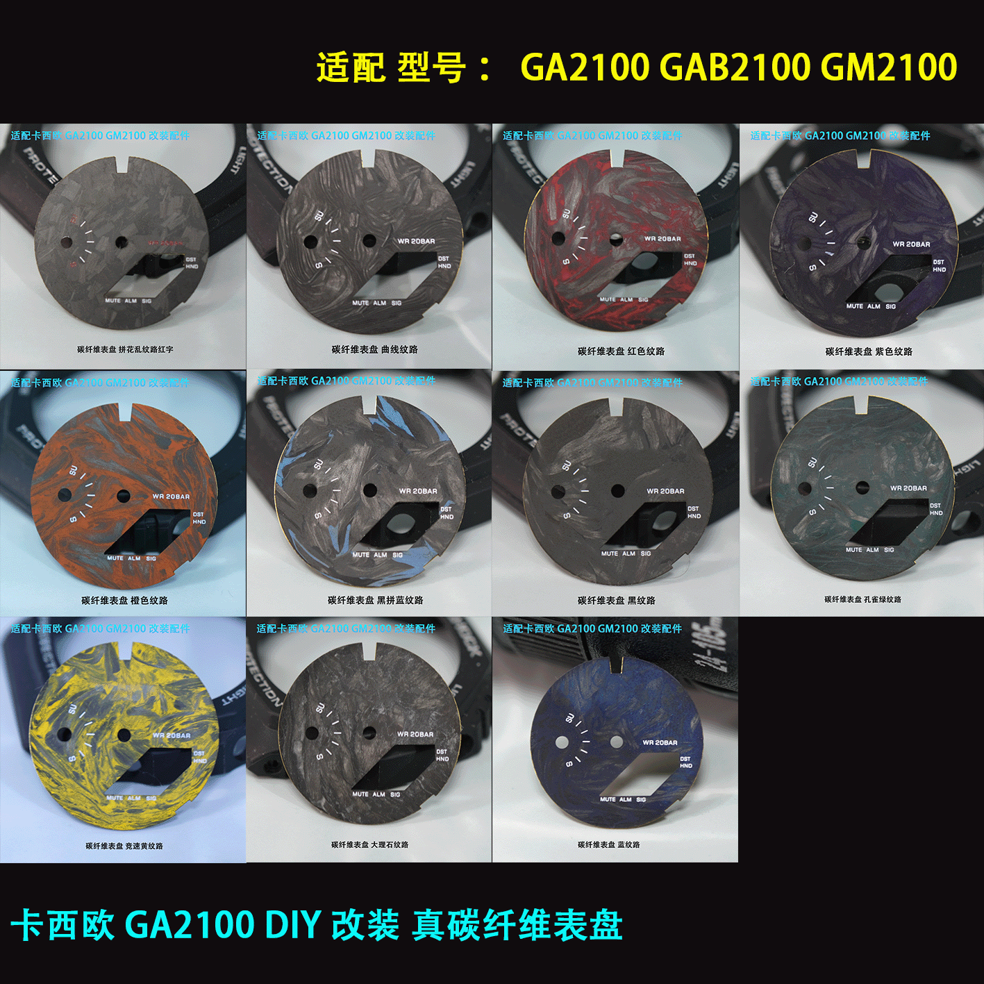 GA2100 Casio Farmhouse Oak Модифицированный циферблат из настоящего углеродного волокна с текстурой Glogo Literal Watch
