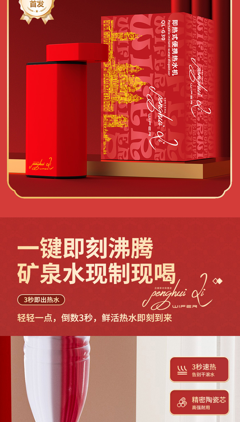 Колaborационное ограниченное издание президента [Premium Product-Red]; Портативный нагреватель горячей воды QL-G30 [молочно-белый]; Кремово-белый книжный стиль [мгновенный нагрев*5 уровней контроля температуры*двойное использование вставки бутылок/соединения ведер]