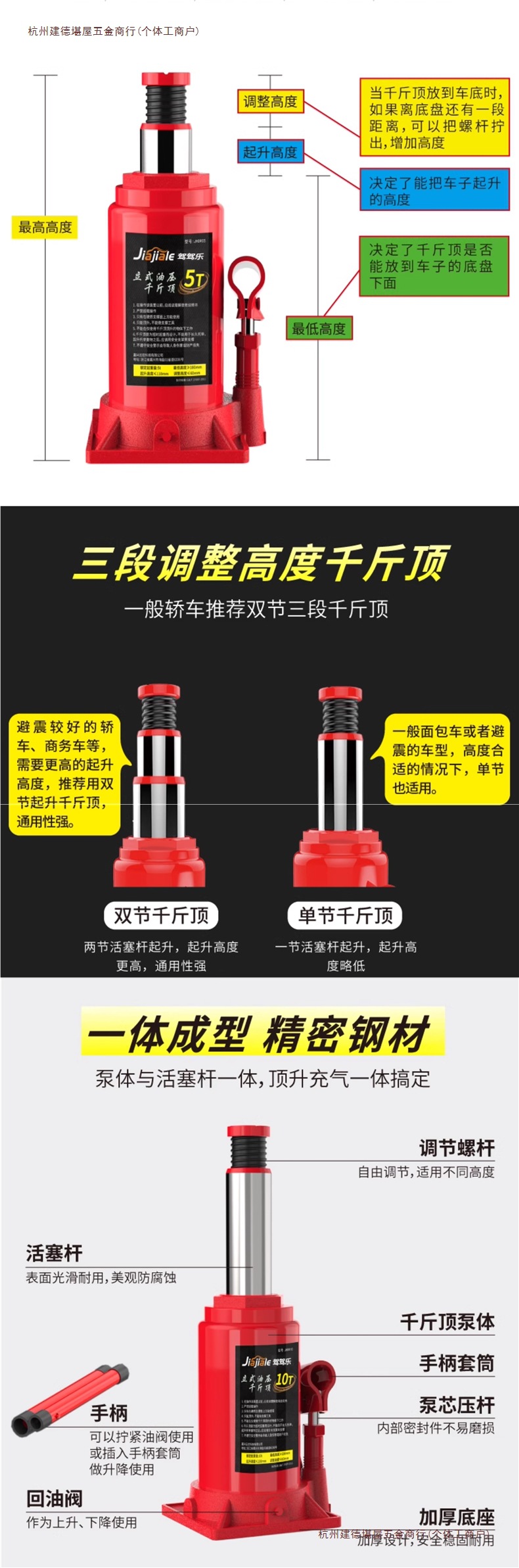Гидравлический вертикальный автомобильный домкрат Jiajiale 0kg грузоподъемностью 2 тонны для грузовых автомобилей и седанов грузоподъемностью 5 тонн, ручной гидравлический автомобильный домкрат.