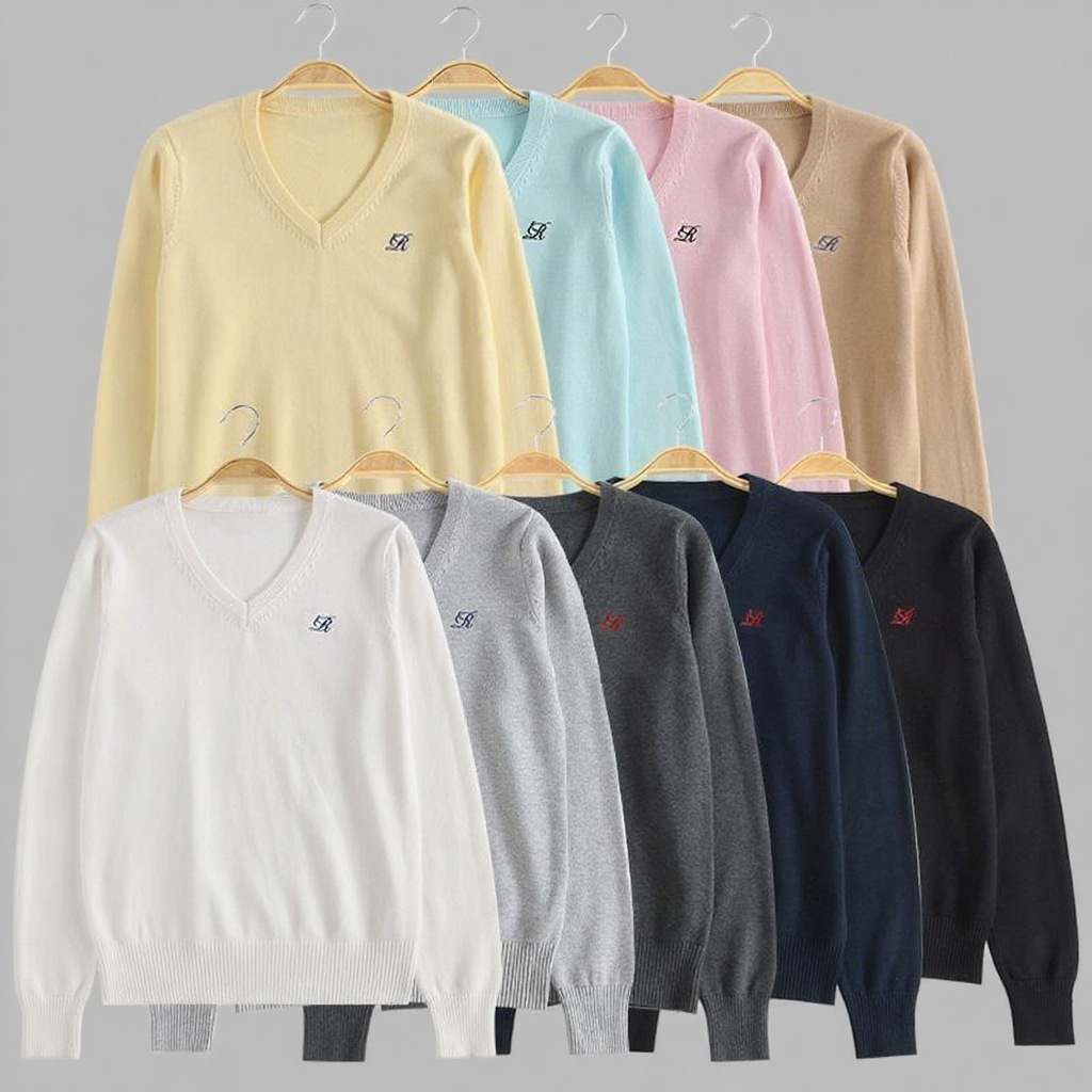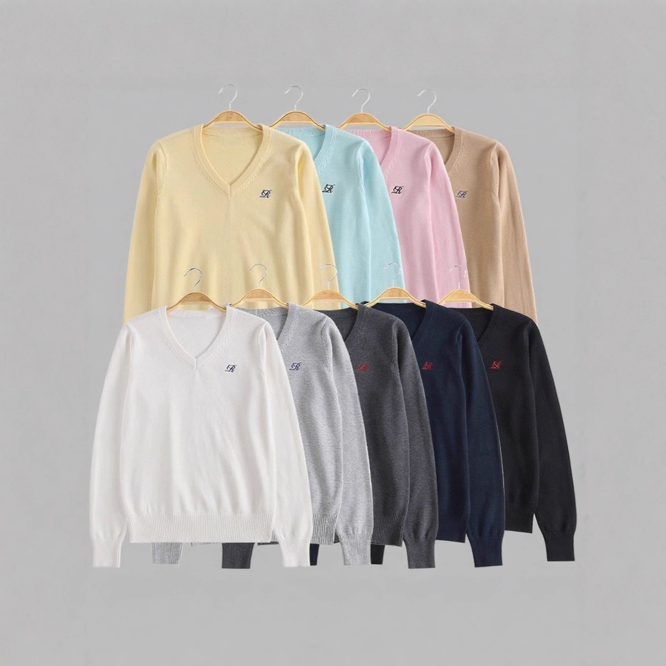 【Прямые поставки с завода】Комплект свитеров Shuiji Zhong/JK: пуловер с V-образным вырезом, школьная форма, вышитый трикотаж JK с объемным узором