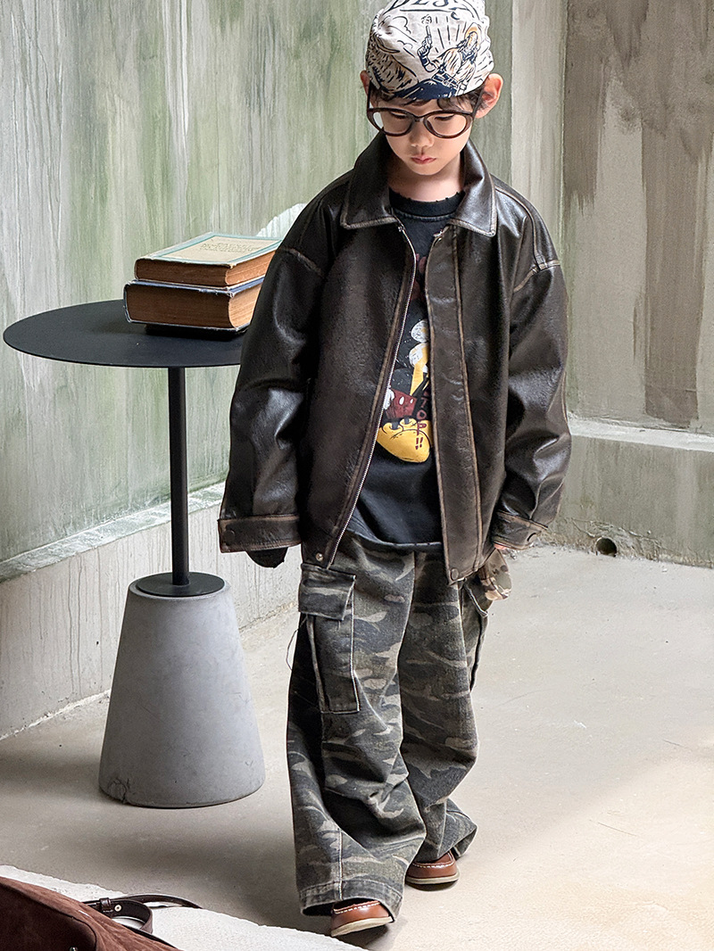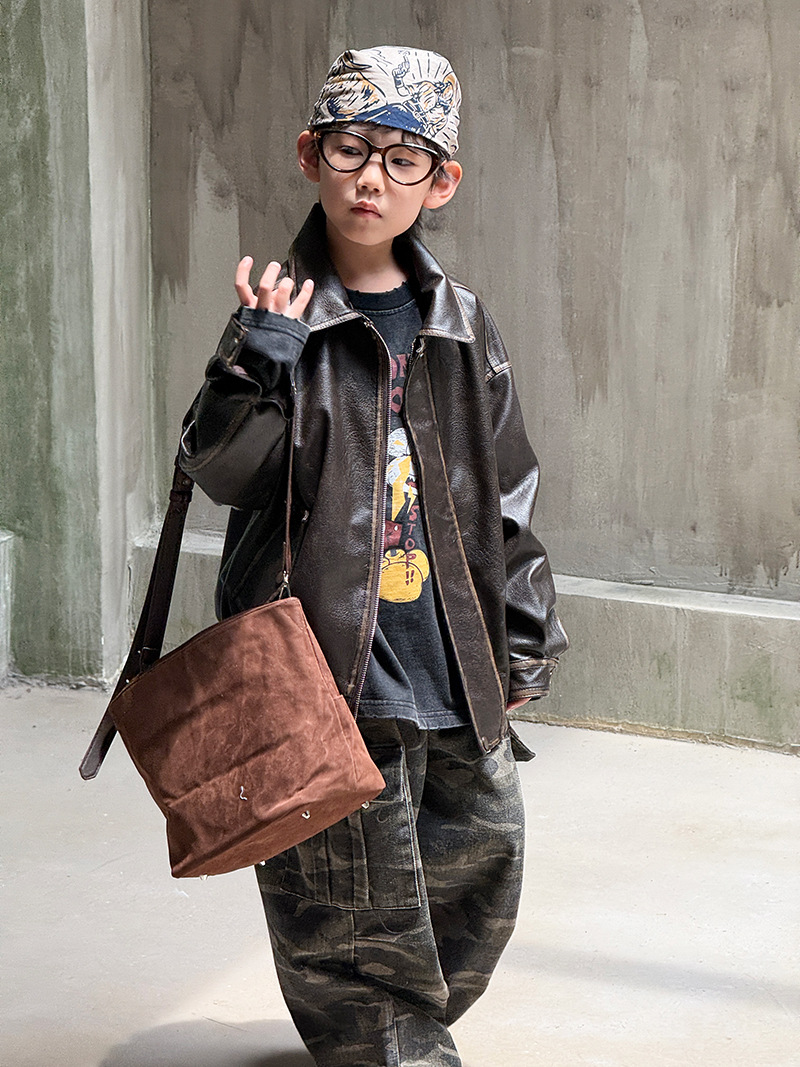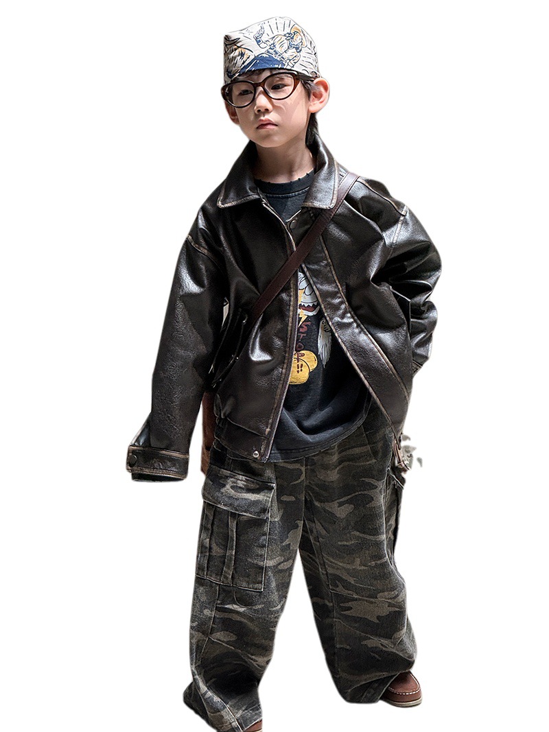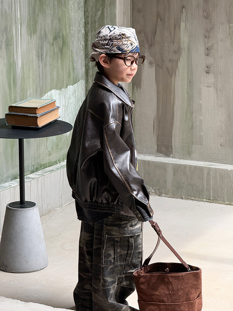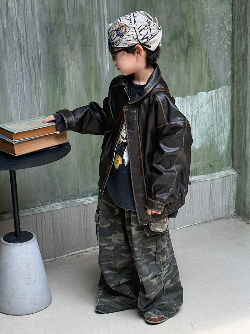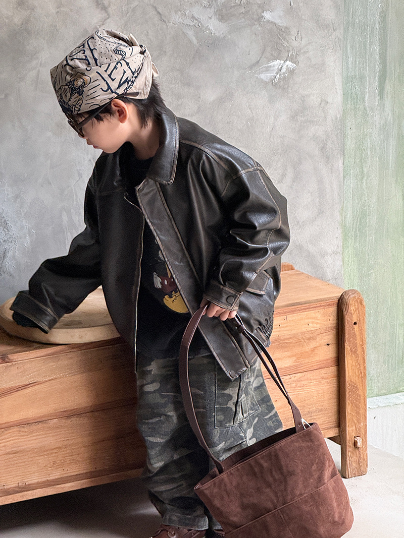 Детская кожаная куртка для мальчиков, осень 2025, новый весенне-осенний стиль для малышей, модная американская одежда для девочек, усиленная.