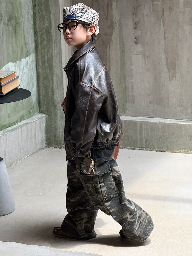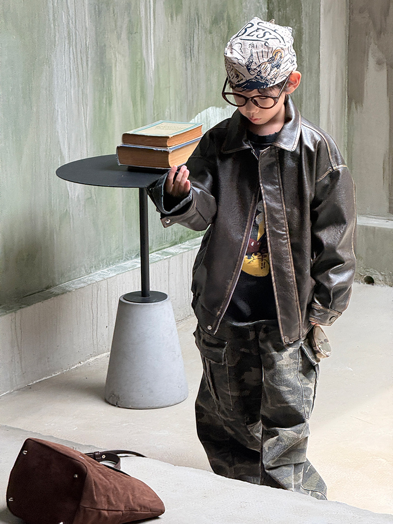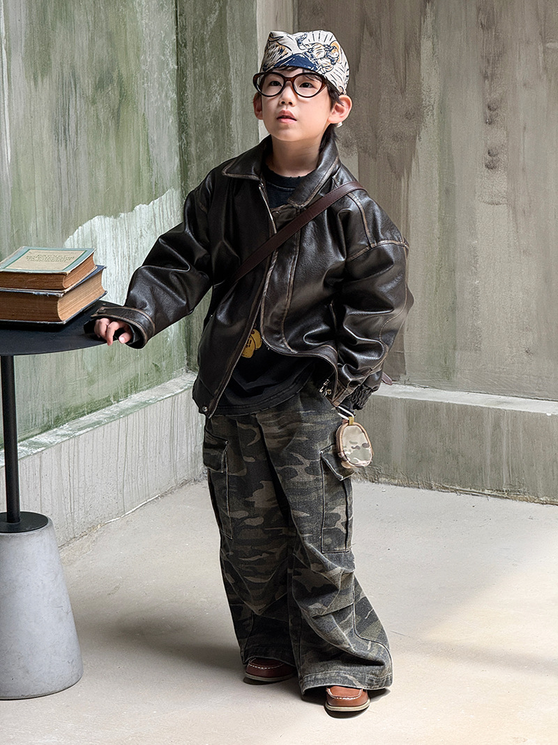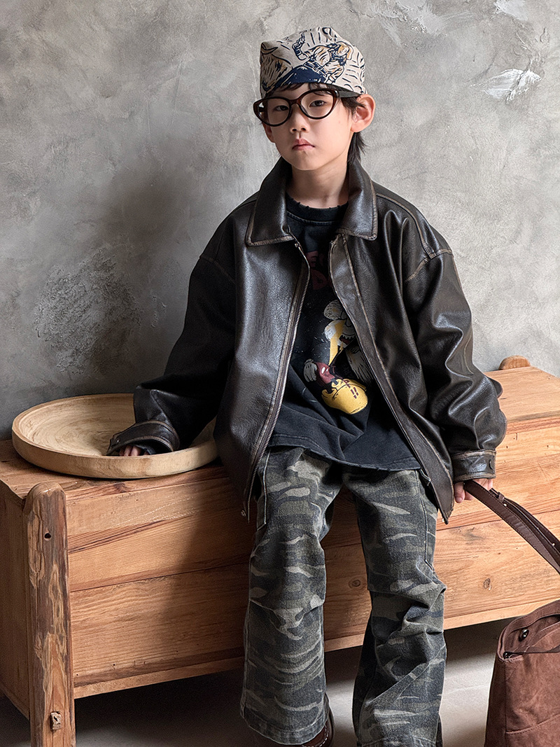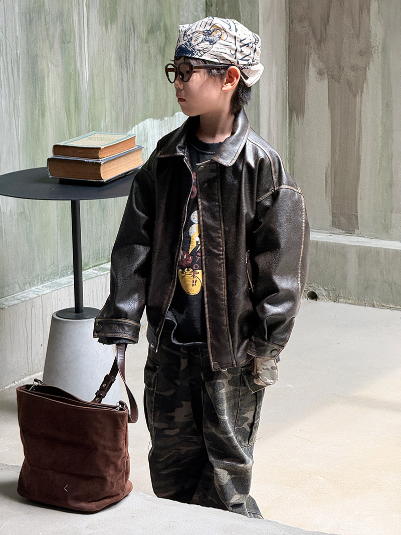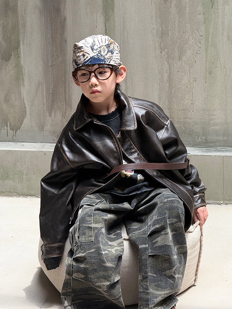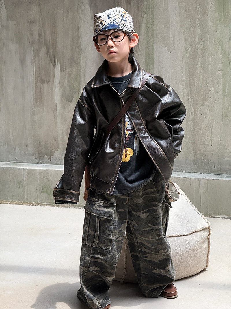 Детская кожаная куртка для мальчиков, осень 2025, новый весенне-осенний стиль для малышей, модная американская одежда для девочек, усиленная.