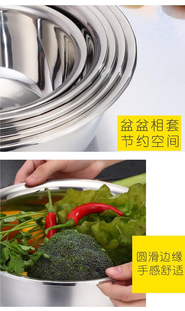 Утолщенная и утолщенная миска для взбивания яиц из нержавеющей стали, круглая миска для приправ, миска для риса, миска для супа, умывальник, миска для овощей, горячая кастрюля