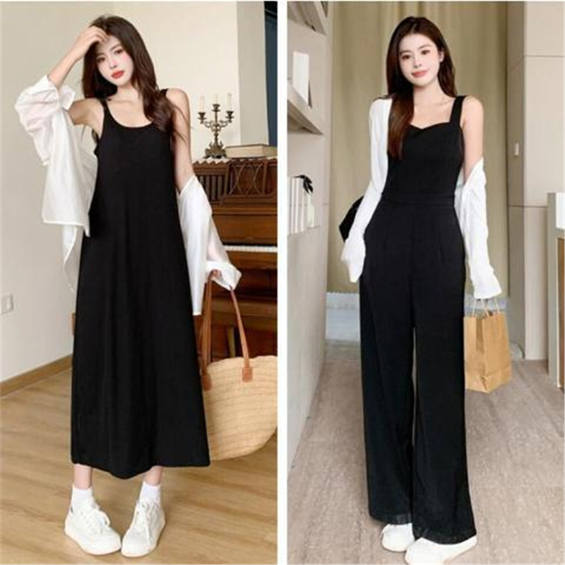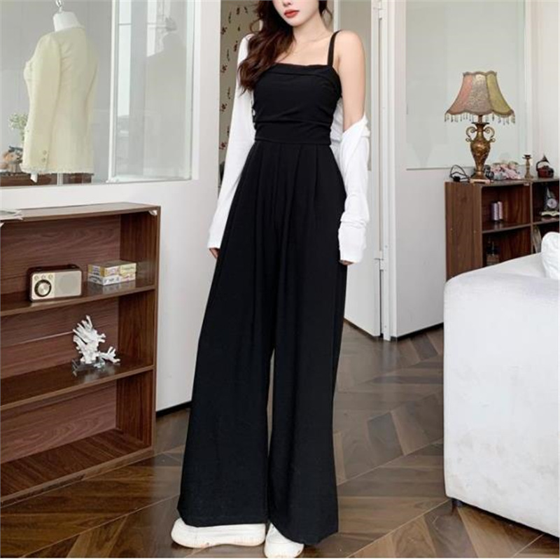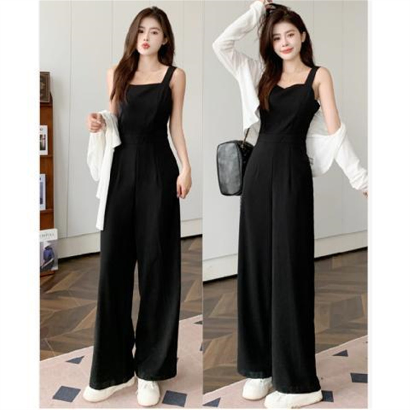 Комбинезон на подтяжках с высокой талией больших размеров, кардиган, комплект из двух предметов для женщин, летние длинные брюки с широкими штанинами и талией мм