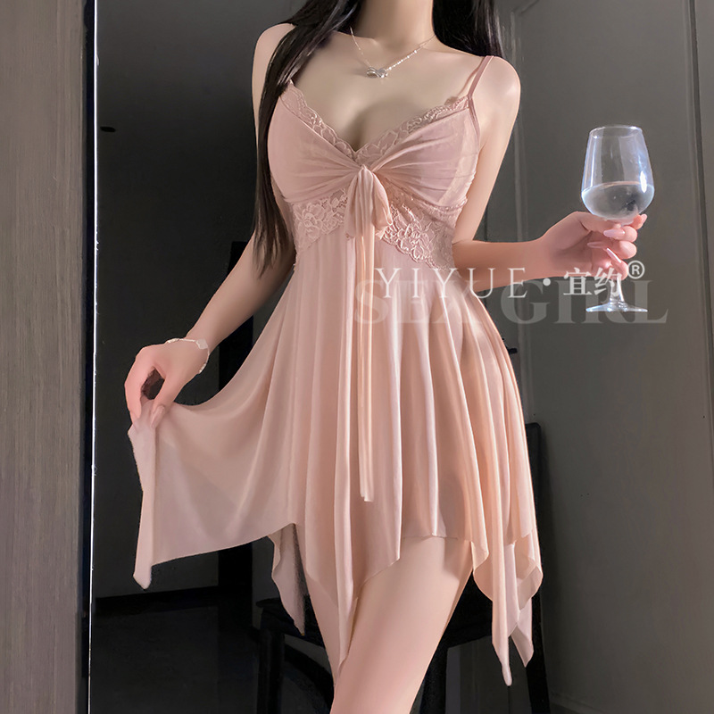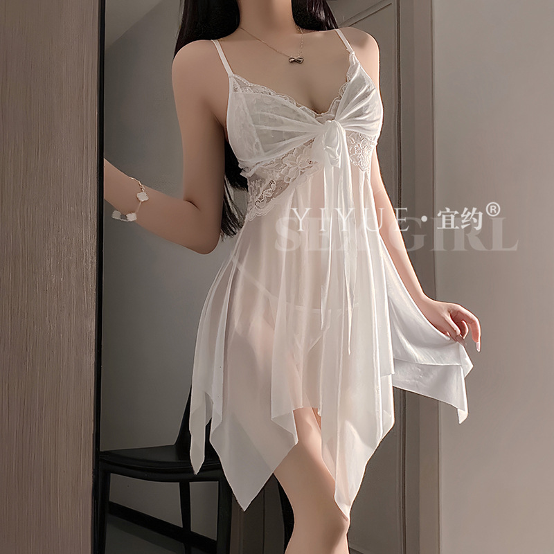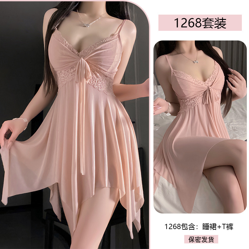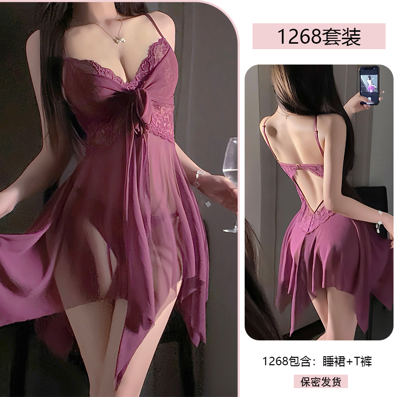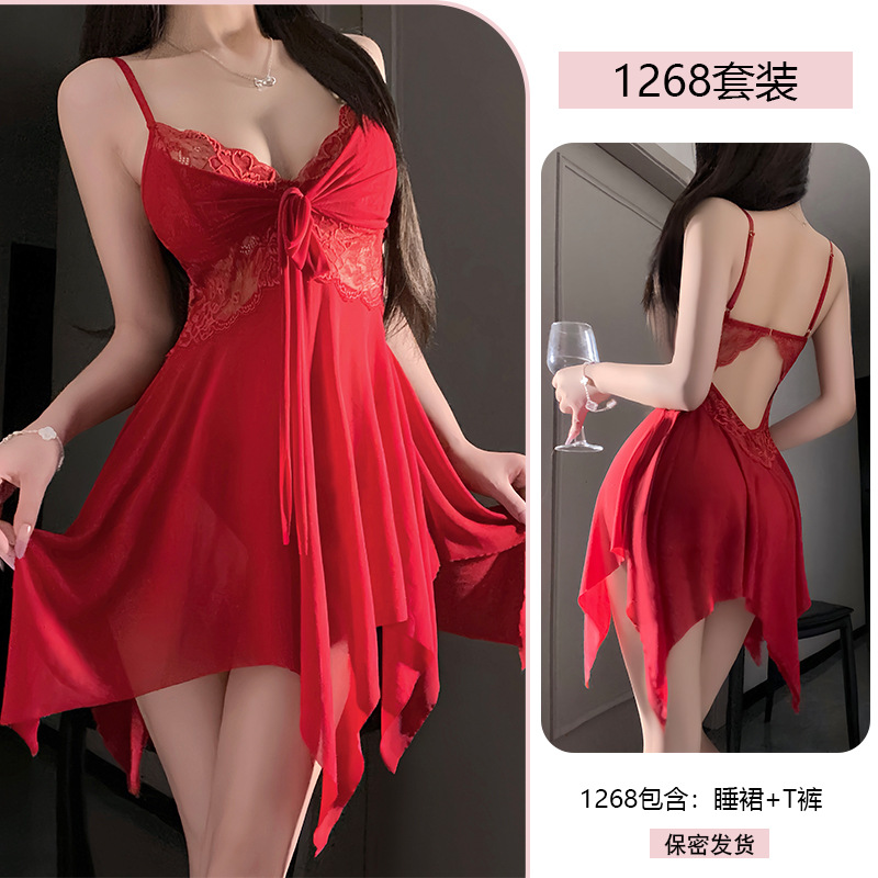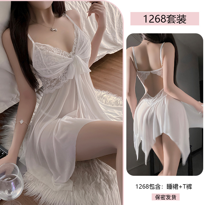 Сексуальное женское белье с кружевной соблазнительной ночнушкой, сетчатой шнуровкой, пуш-апом, чистое желание, униформа без снятия пижамы 1268.