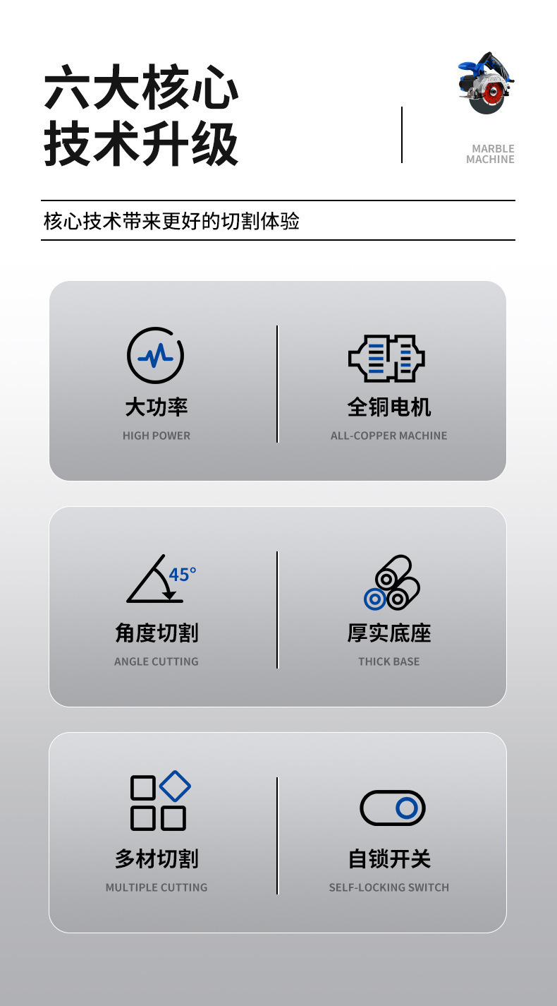 Мраморная машина мощностью 2980 Вт (стандартная конфигурация) поставляется с угольной щеткой.; Машина для обработки мрамора мощностью 2980 Вт + пильное полотно по дереву + угольная щетка; Машина для обработки мрамора 2980 Вт + дерево + камень + угольная щетка; Машина для обработки мрамора 2980 Вт + дерево + камень + металл + мелкие зубья + угольная щетка; Мраморная машина мощностью 4380 Вт (стандартная конфигурация) поставляется с угольной щеткой (регулируемый угол наклона).; Машина для обработки мрамора мощностью 4380 Вт + пильное полотно по дереву + угольная щетка (регулируемый угол); Машина для мрамора мощностью 4380 Вт + дерево + камень + угольная щетка (регулируемый угол); Машина для обработки мрамора 4380 Вт + дерево + камень + металл + мелкие зубья + угольная щетка (регулируемый угол); 5inch увеличенная мраморная машина (стандартная конфигурация) поставляется с угольной щеткой (двойная ручка, высокая энергия); 5inch увеличенная мраморная машина + пила по дереву + угольная щетка (двойная ручка, высокая энергия); 5inch Большая мраморная машина + дерево + камень + угольная щетка (двойная ручка, высокая энергия); 5inch Большая мраморная машина + дерево + камень + металл + мелкие зубья + угольная щетка (двойная ручка, большая; 4inch Промышленная мраморная машина (стандартная конфигурация) поставляется с угольной щеткой.; 4inch Промышленная машина для обработки мрамора + пильное полотно по дереву + угольная щетка; 4inch Промышленная машина для обработки мрамора+дерево+камень+угольная щетка; 4inch Промышленная машина для обработки мрамора+дерево+камень+металл+мелкие зубья+угольная щетка
