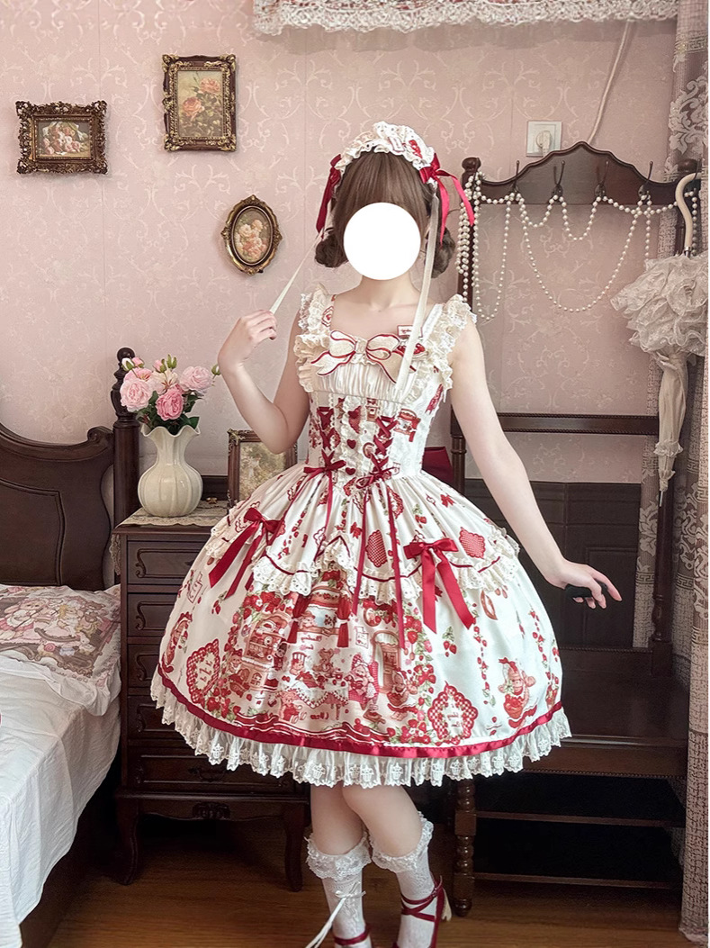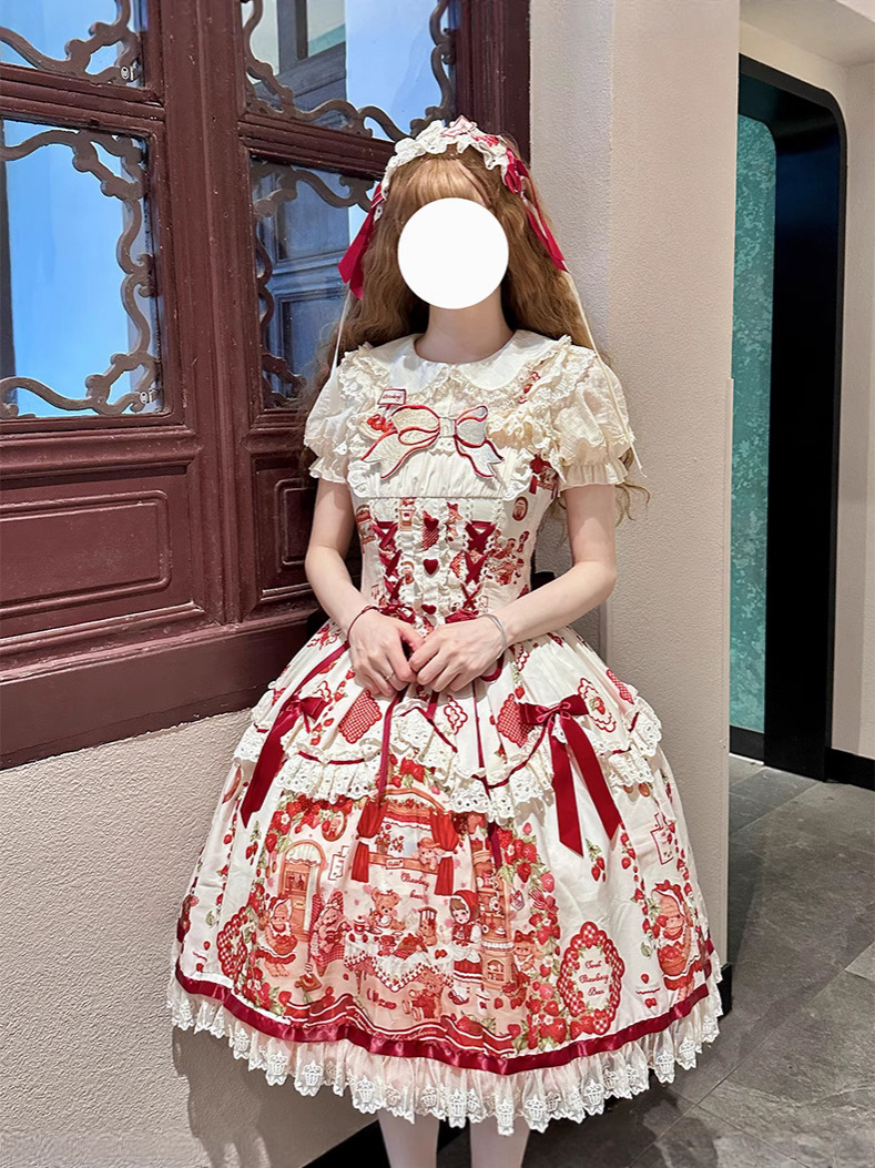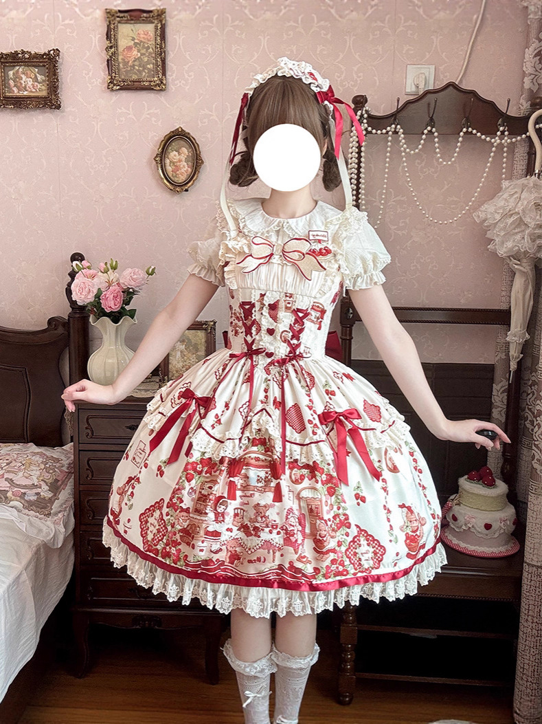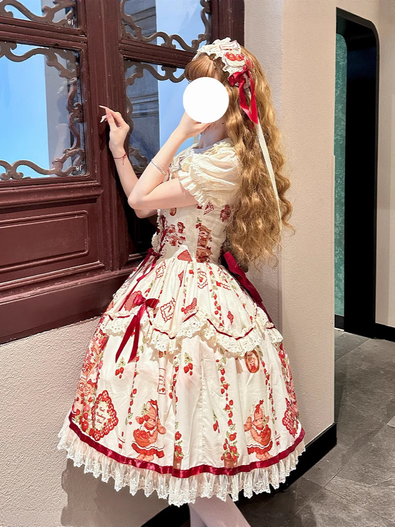 [Клубничный мишка] Brocade Garden lolita оригинальное милое платье Лолиты с клубничным принтом и ручкой
