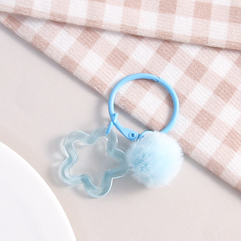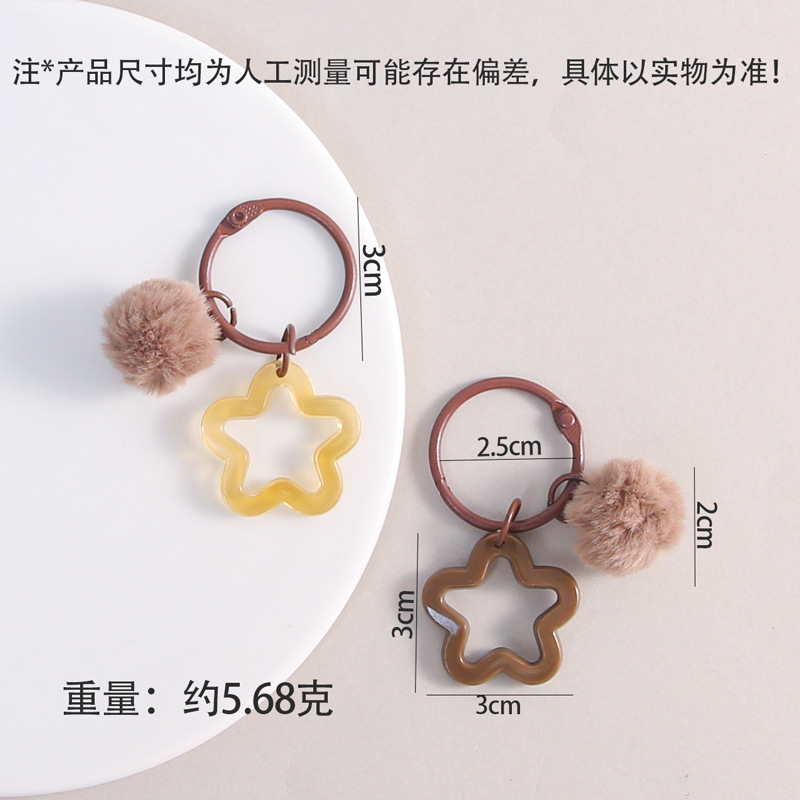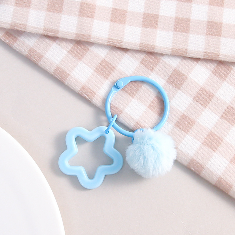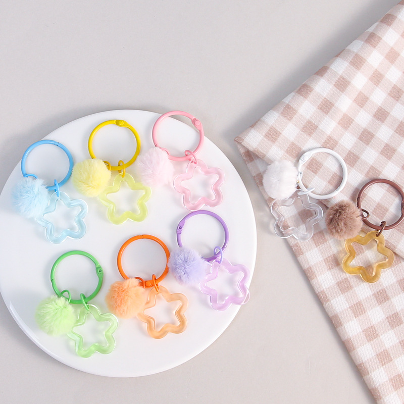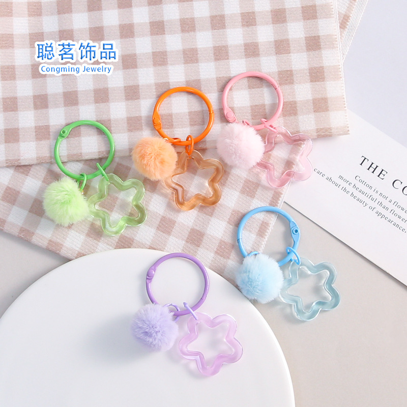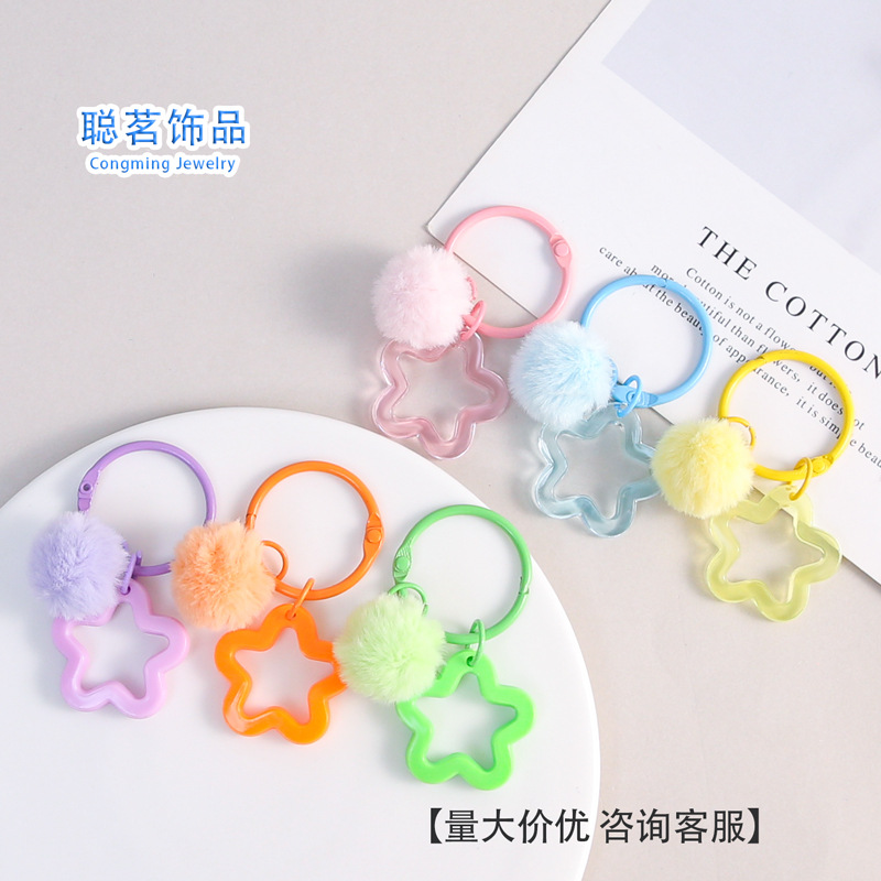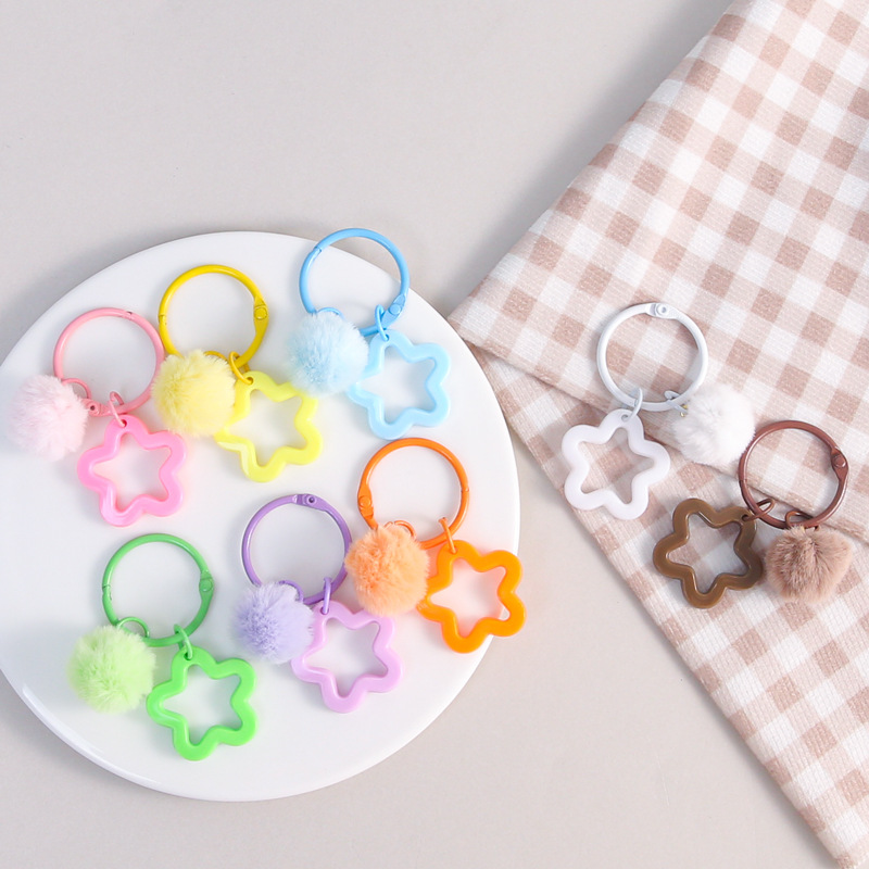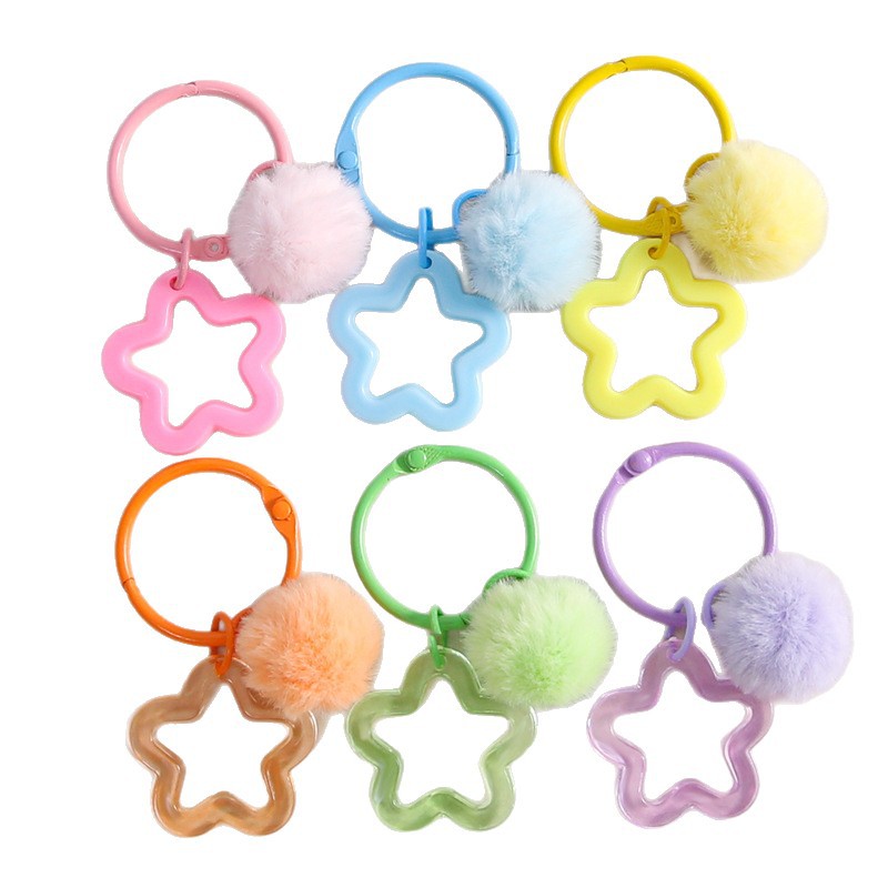 彩色五角星挂毛球钥匙扣可爱小清新男女包包diy装饰挂件礼品批发