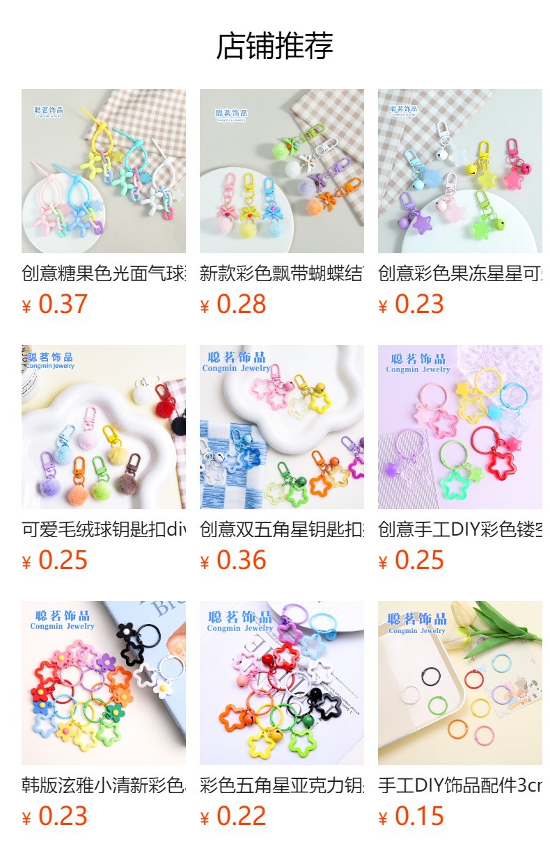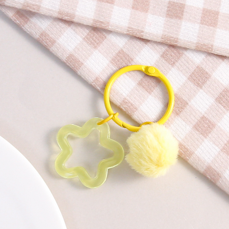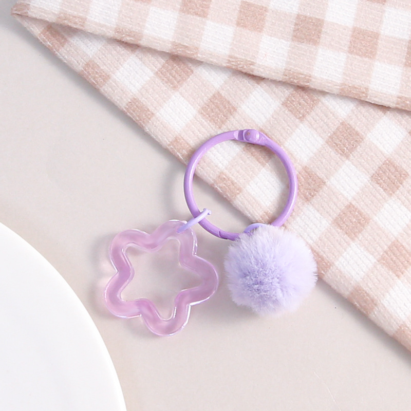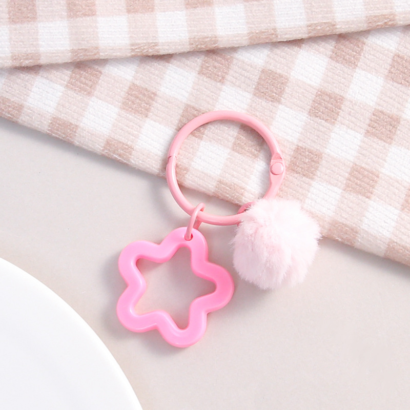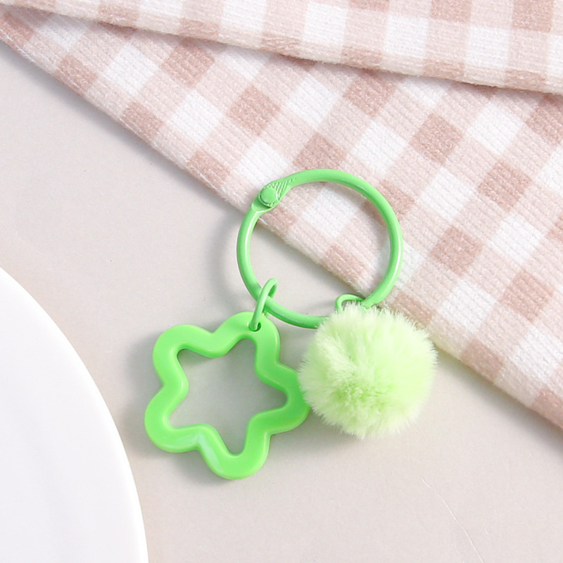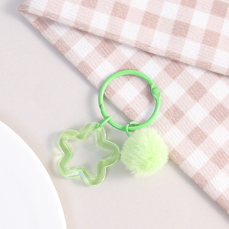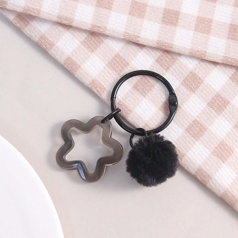 彩色五角星挂毛球钥匙扣可爱小清新男女包包diy装饰挂件礼品批发