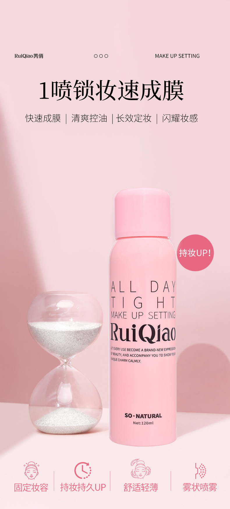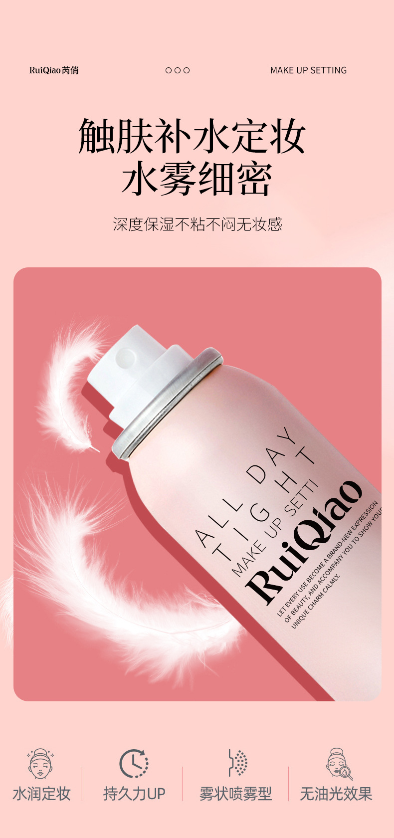 Популярный увлажняющий спрей для макияжа Ruiqiao от Douyin, мягкий матовый матовый стойкий контроль жирности, фиксация макияжа против пота, естественный и несмываемый макияж