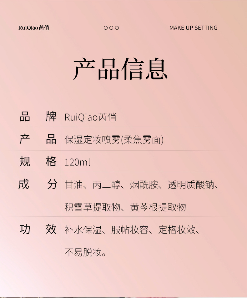 Увлажняющий спрей для фиксации макияжа Ruiqiao (Soft Focus Matte)