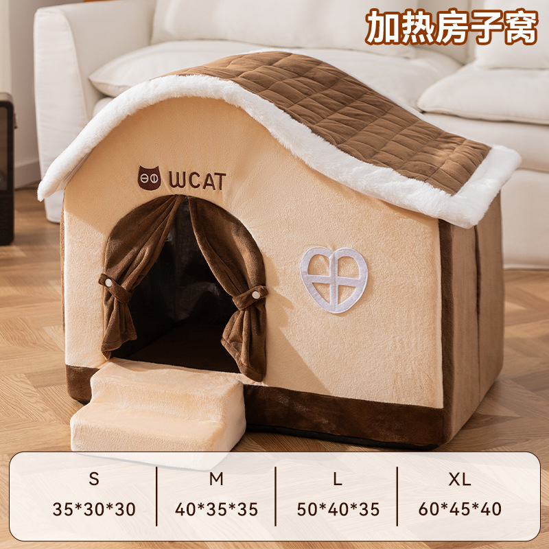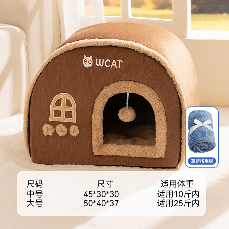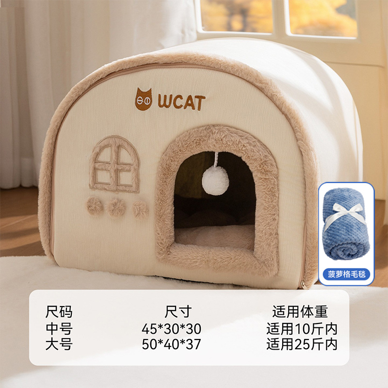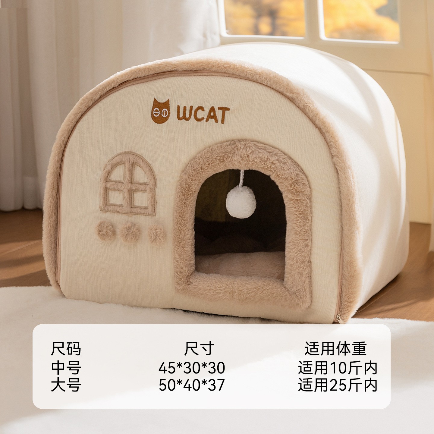 Коттедж для кошек 2025 года, новая модель, для путешествий, теплый, закрытый, с дверцей и шторкой, на осень и зиму, также подходит для собак, кошачья вилла, кошачье гнездо