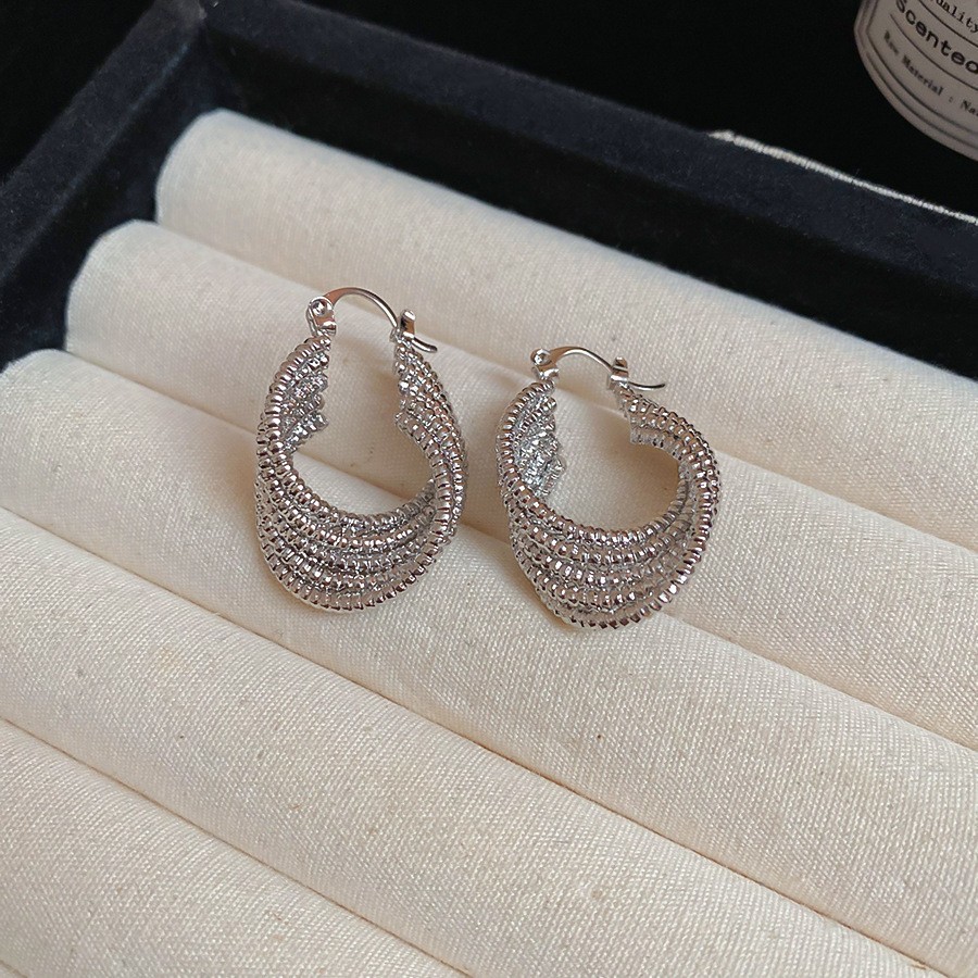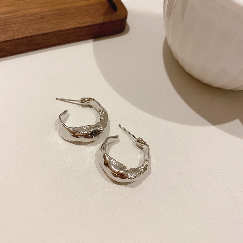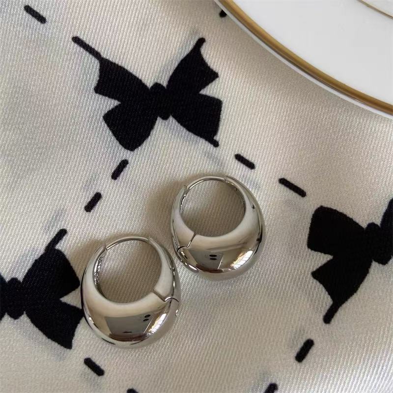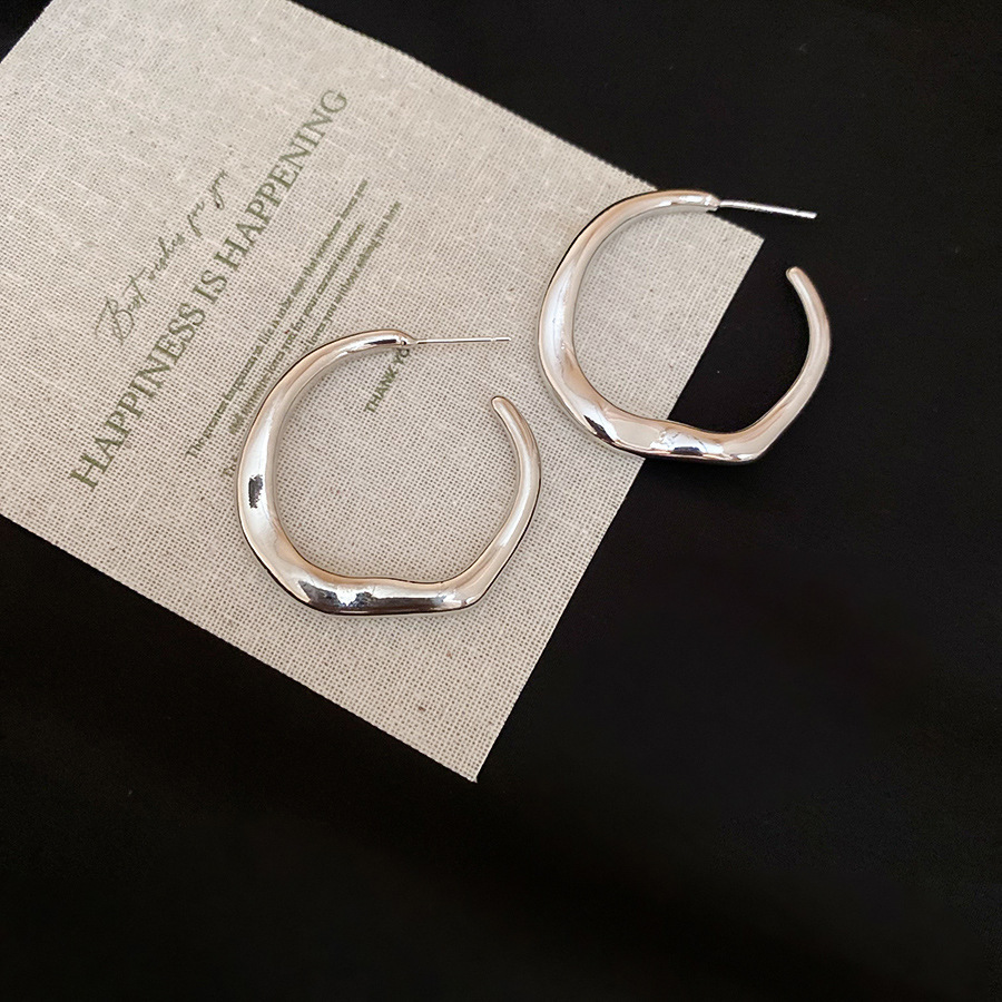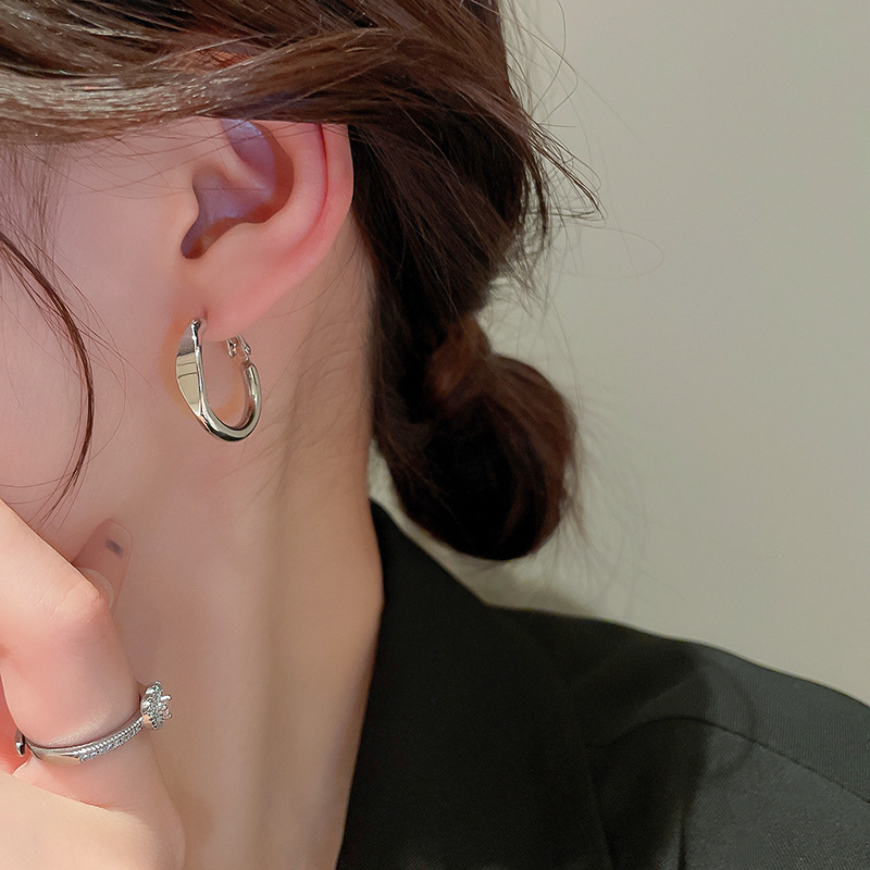 Серебряные игольчатые геометрические круглые серьги C-образной формы, европейские и американские модные простые универсальные элегантные серьги, нишевые дизайнерские серьги для женщин