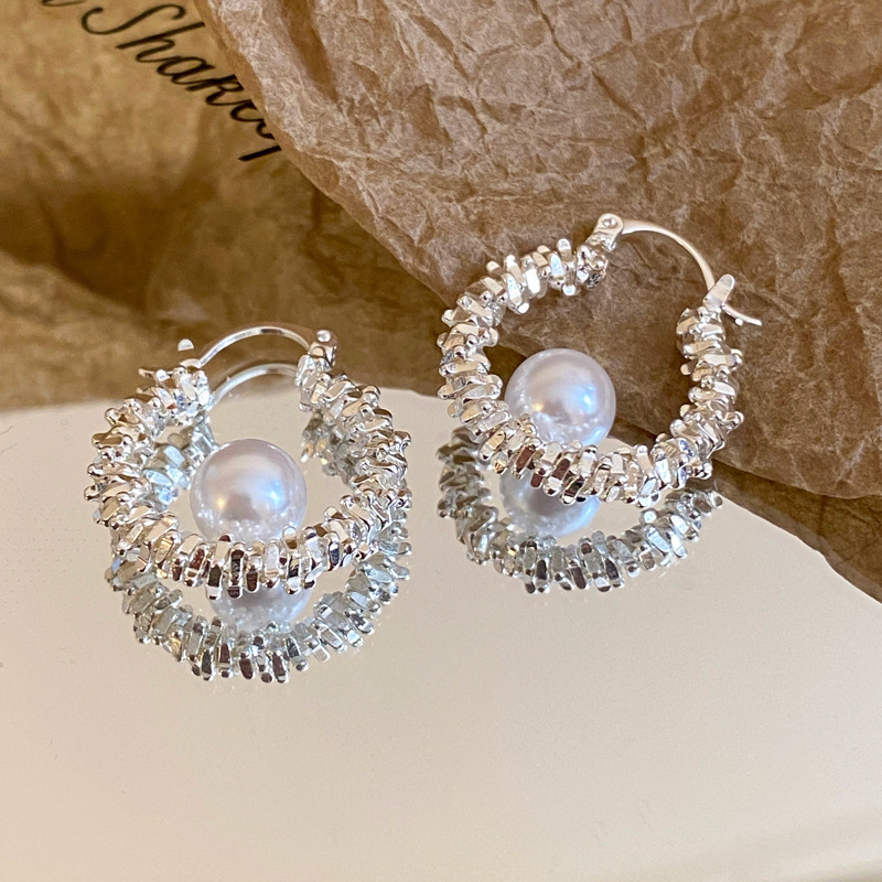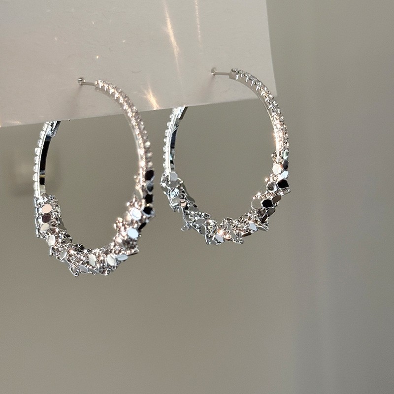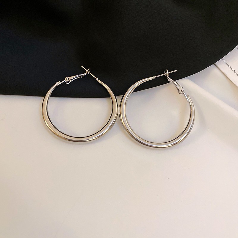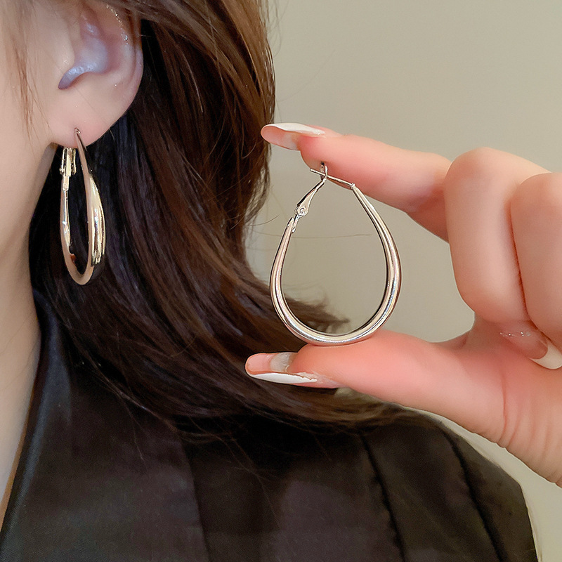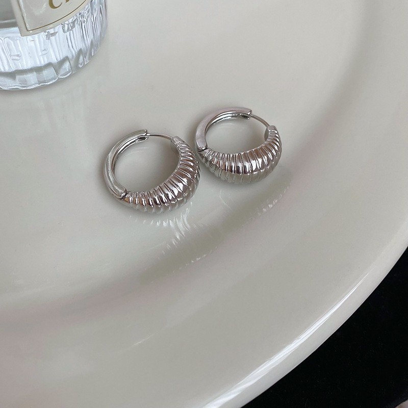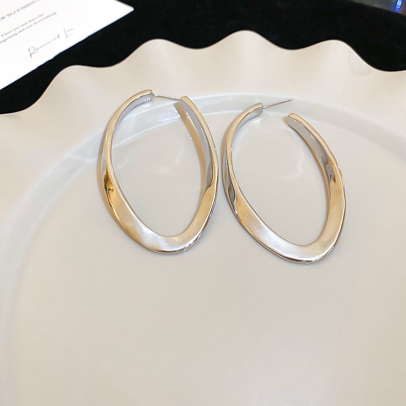 Серебряные игольчатые геометрические круглые серьги C-образной формы, европейские и американские модные простые универсальные элегантные серьги, нишевые дизайнерские серьги для женщин