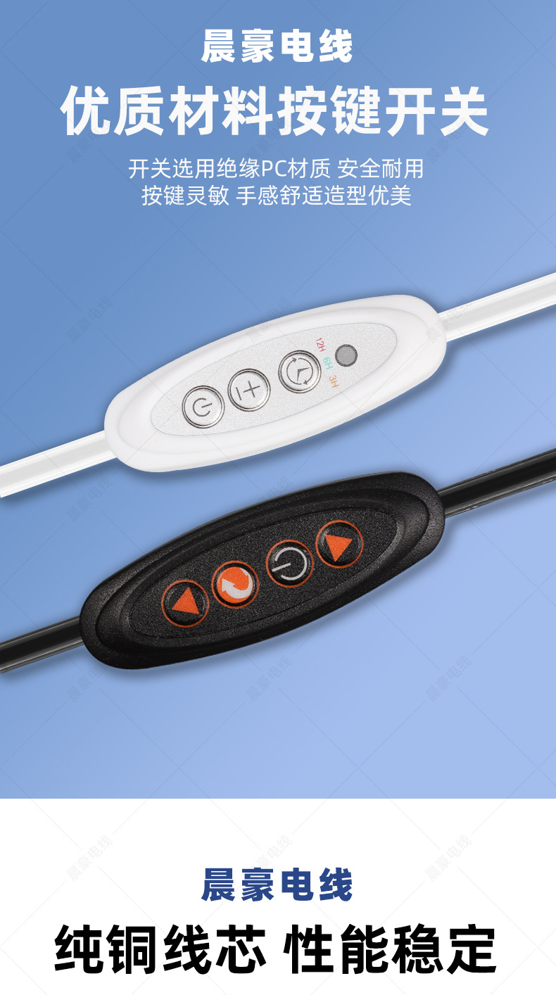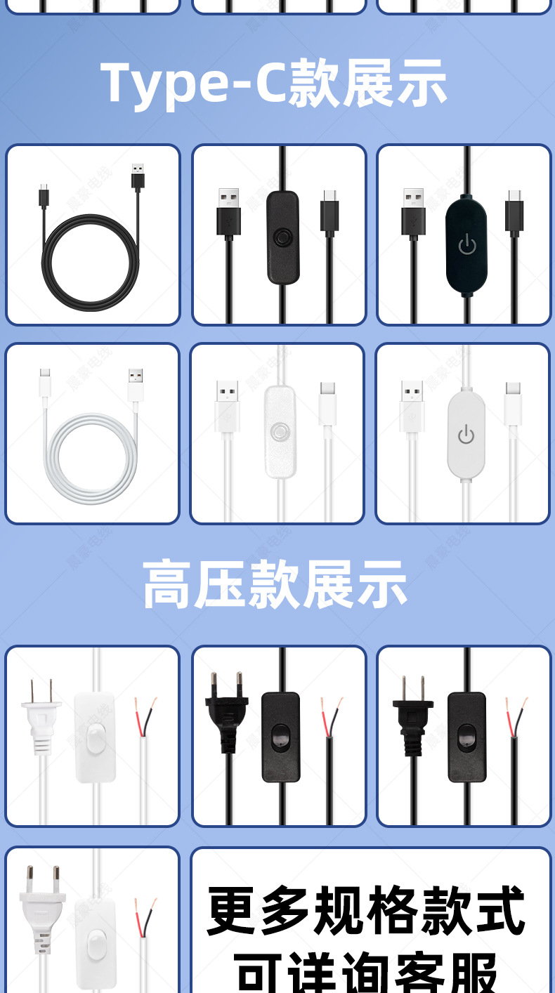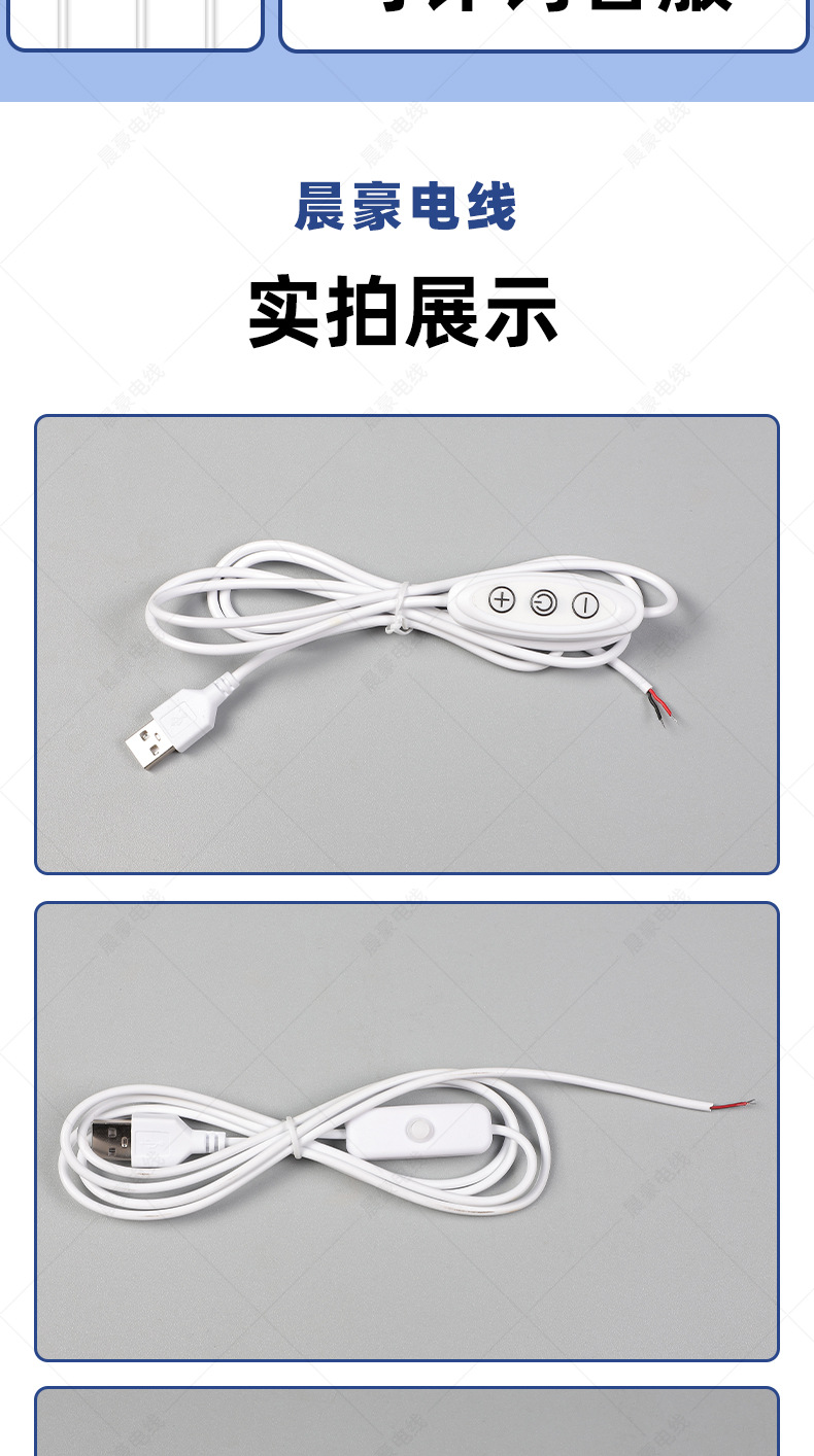 台灯电源线电热毯开关插头线303国标两扁插数据线调光变色调色