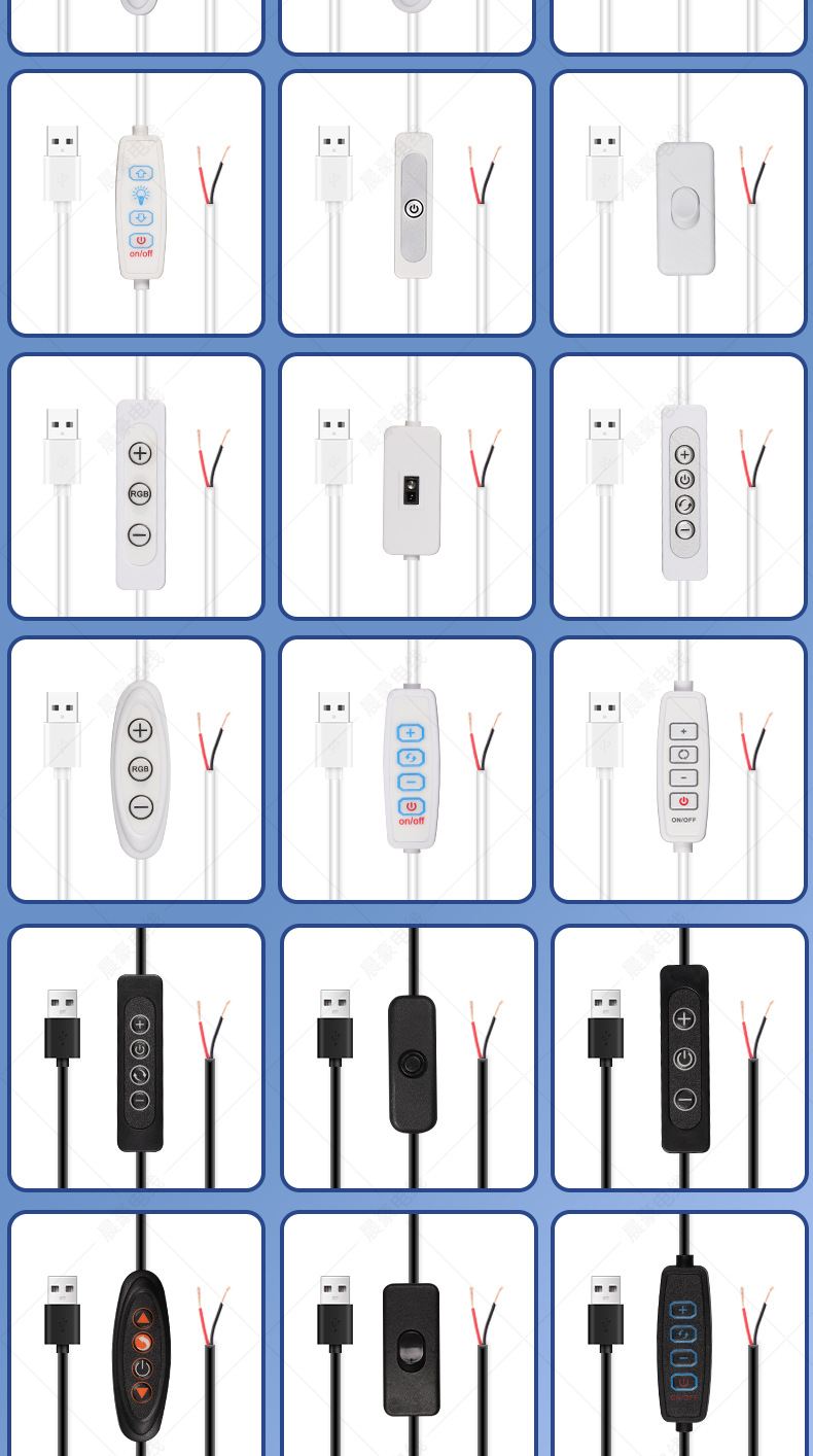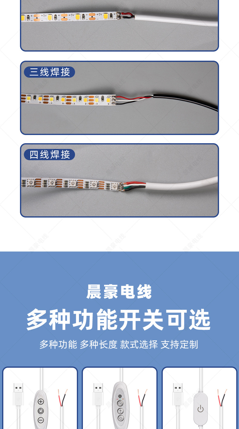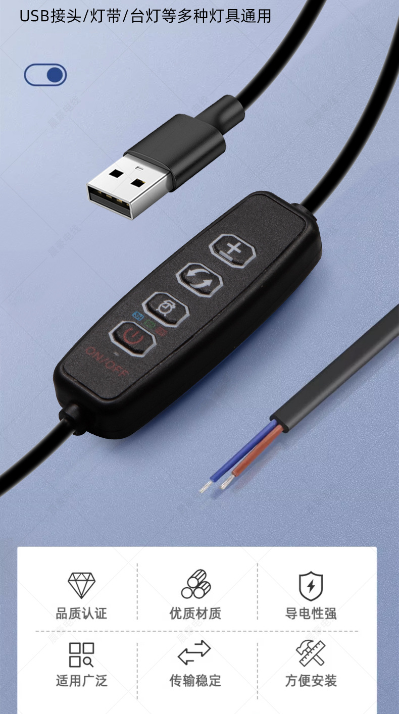 台灯电源线电热毯开关插头线303国标两扁插数据线调光变色调色