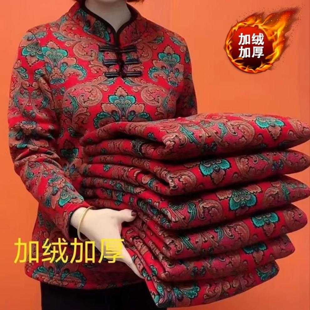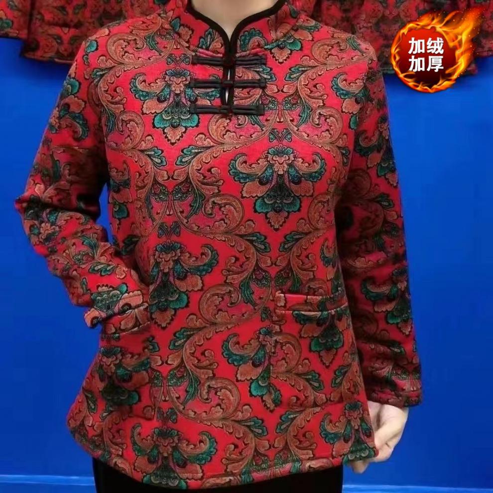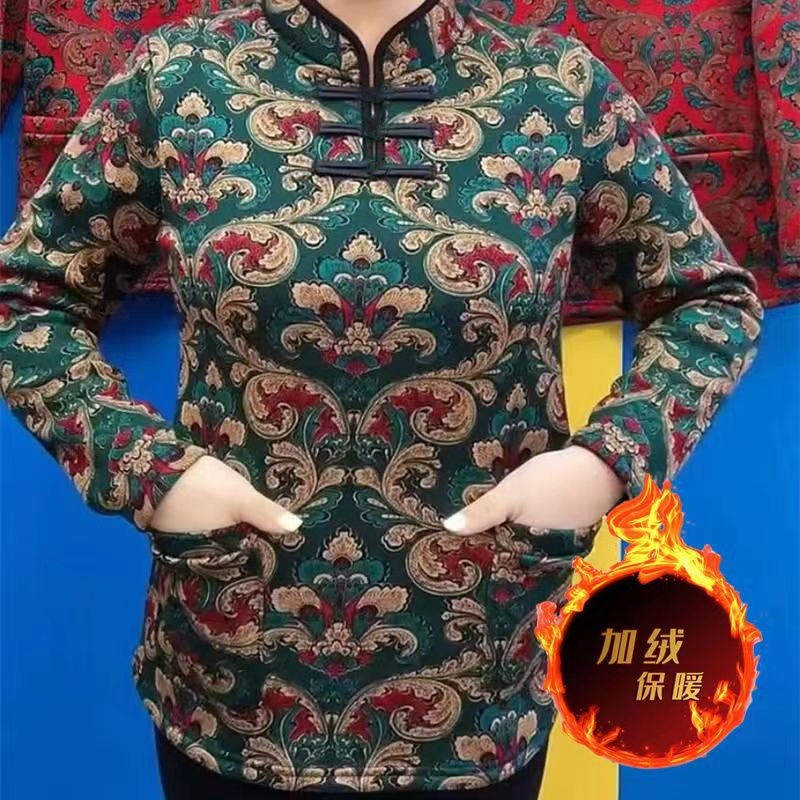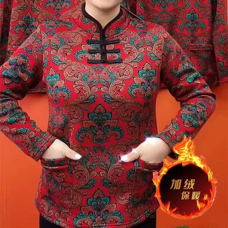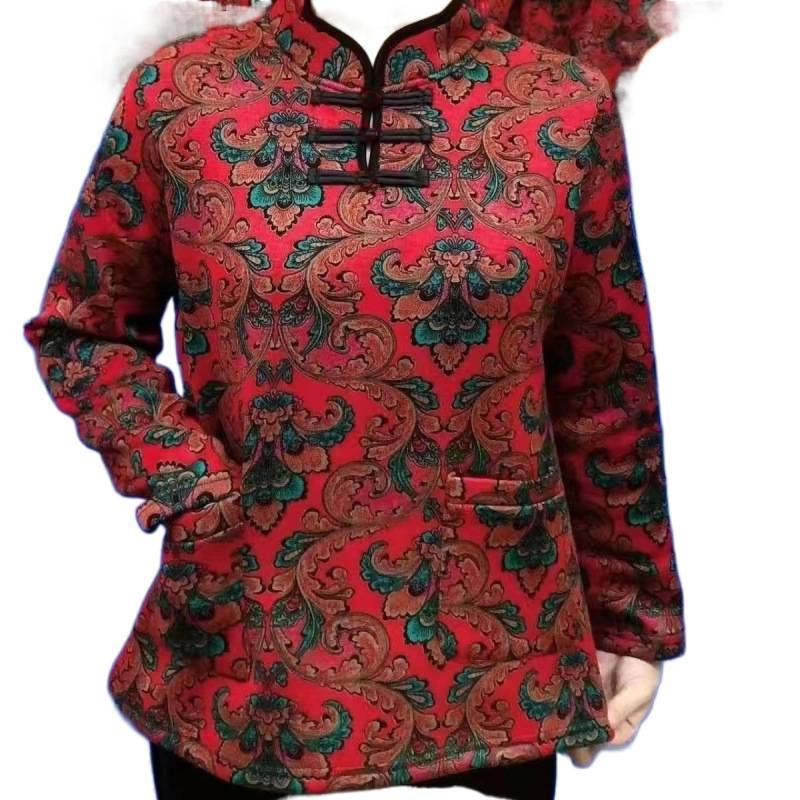 Теплый чонсам с флисом, этнический стиль, с длинными рукавами для мам, новинка 2024 года, утолщенный базовый слой на пуговицах, закрывающий живот, популярный стиль.