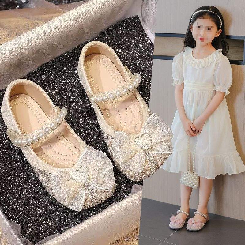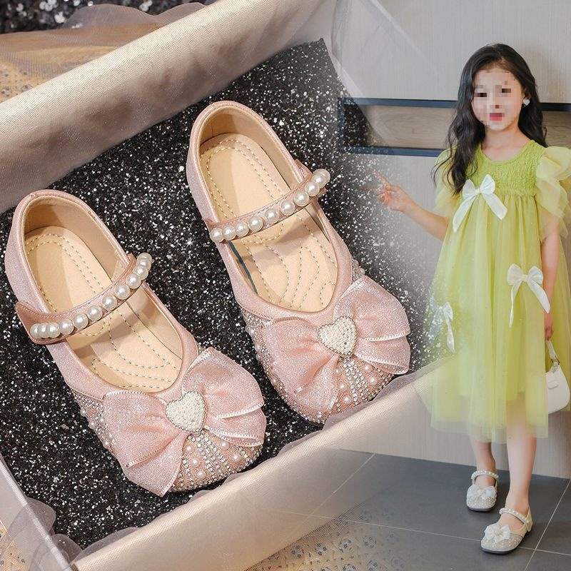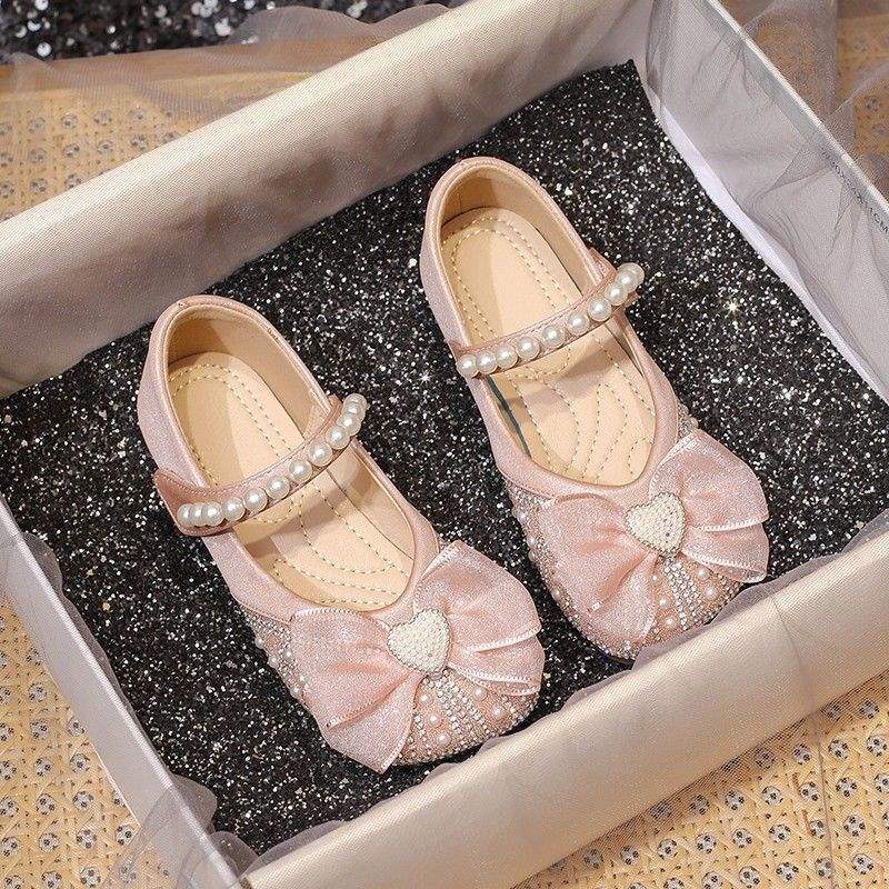 Туфли принцессы для девочек, туфли с кристаллами, мягкая подошва, лето 2025, новый стиль, детский стиль, блестящие туфли, туфли для маленьких девочек, туфли с бантом
