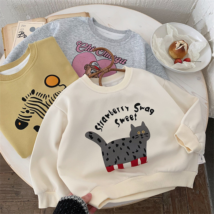 2025春秋新款韩版儿童套头卫衣男女童卡通印花上衣中小童外套衣服