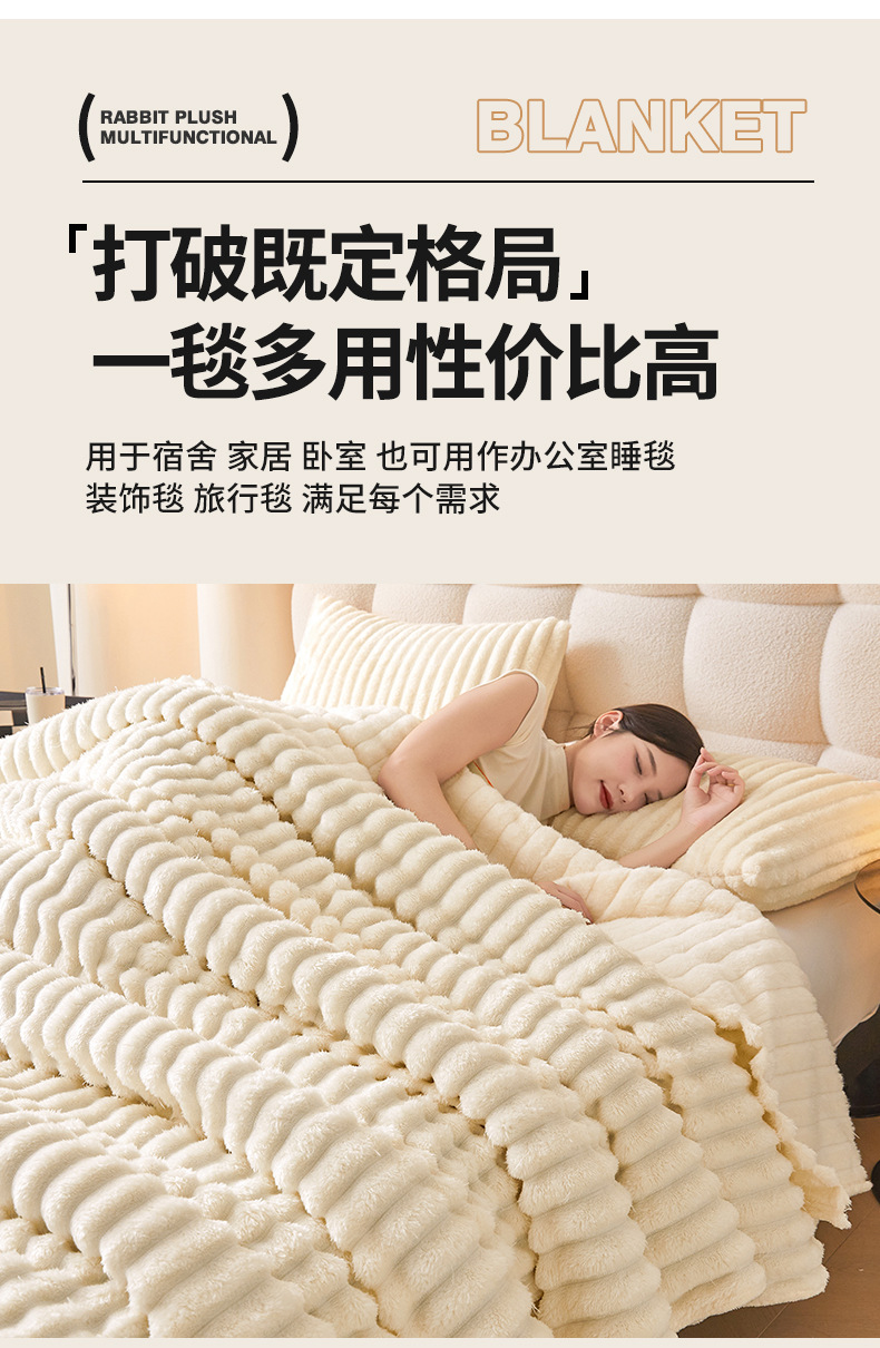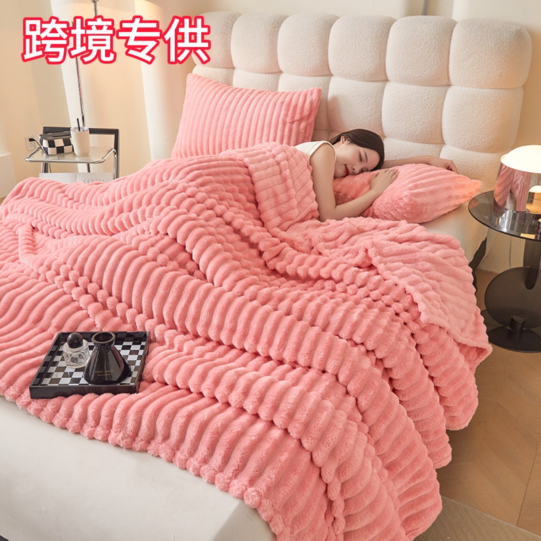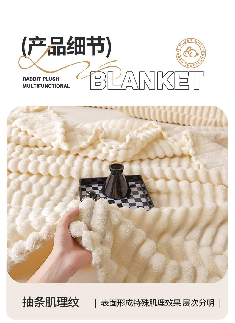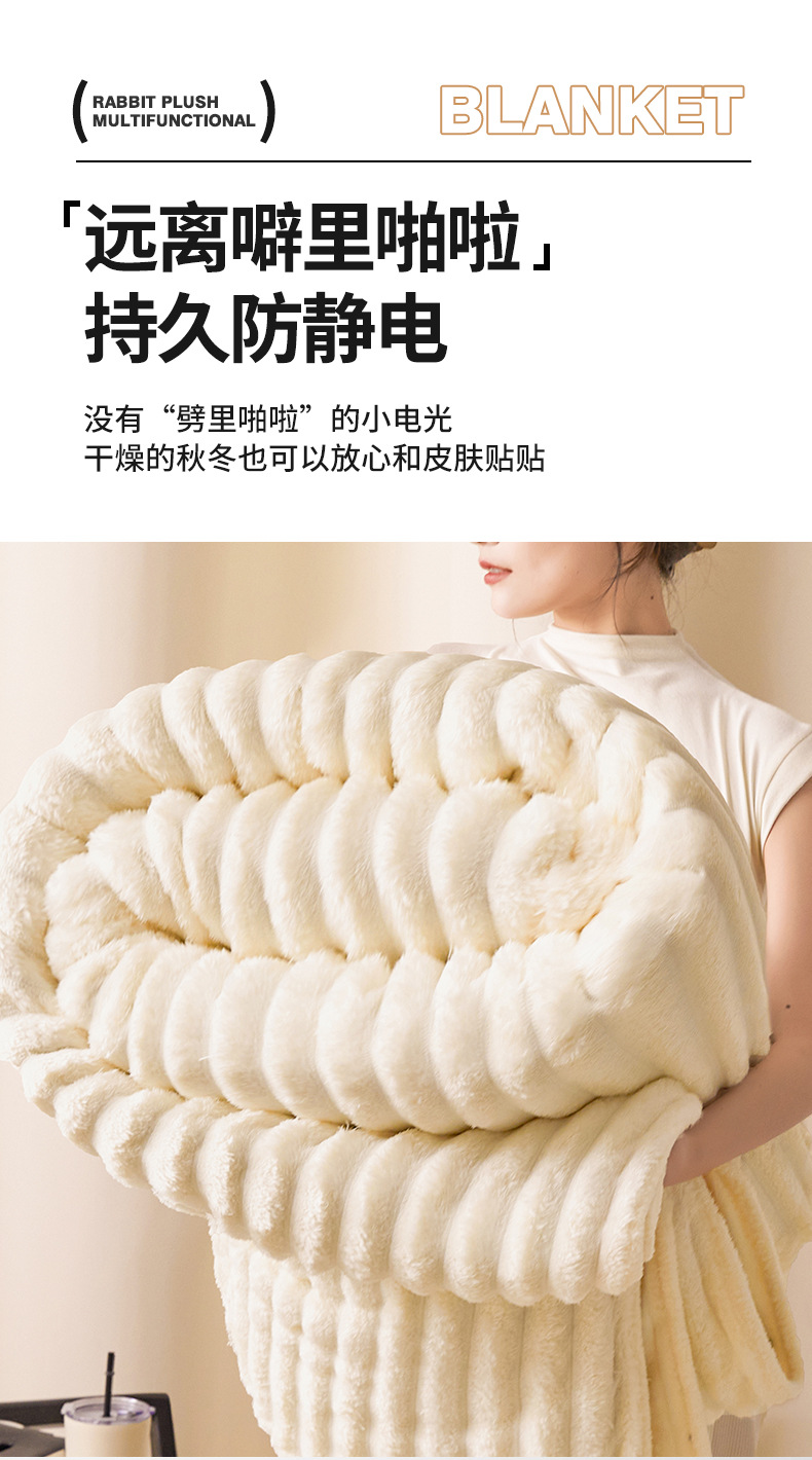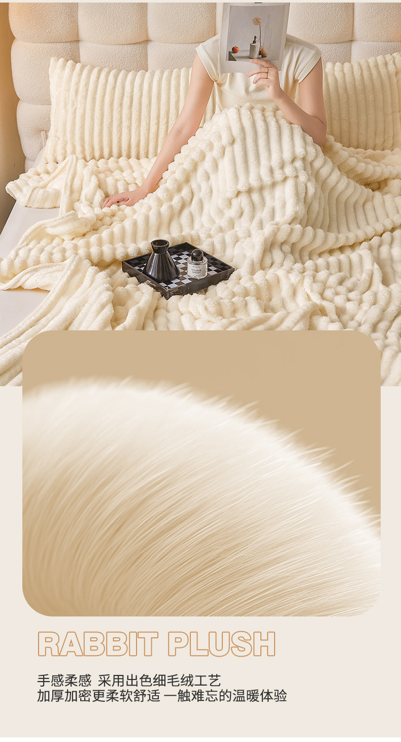 Трансграничное плюшевое одеяло с кроликом, утолщенное одеяло из молочного бархата, полосатое фланелевое одеяло с кондиционером, многофункциональное одеяло для сна, оптовая продажа