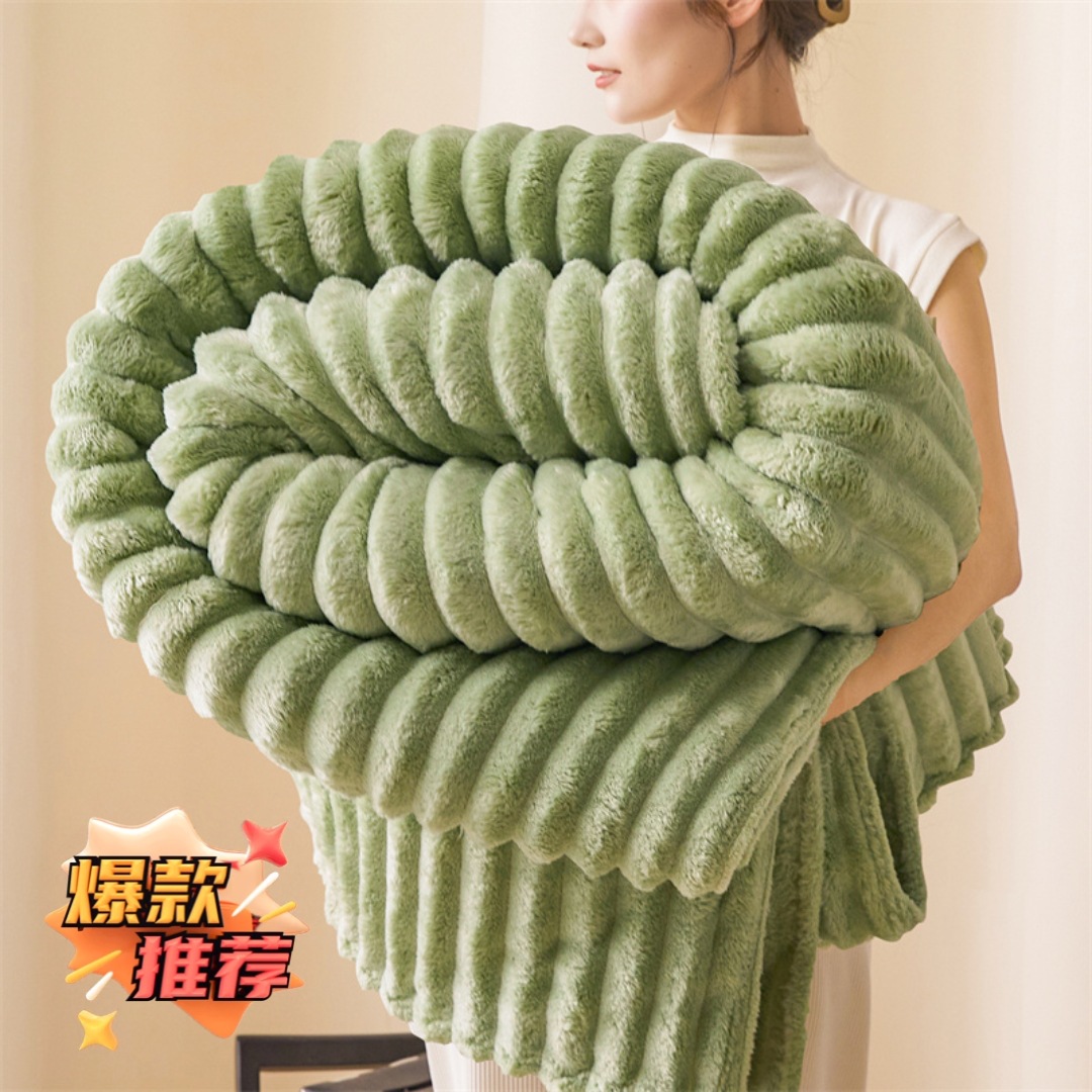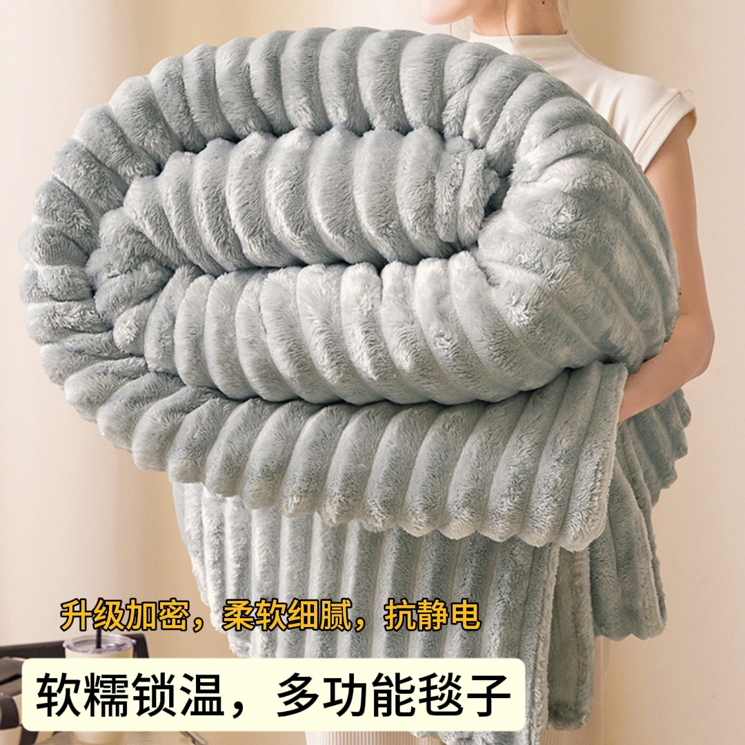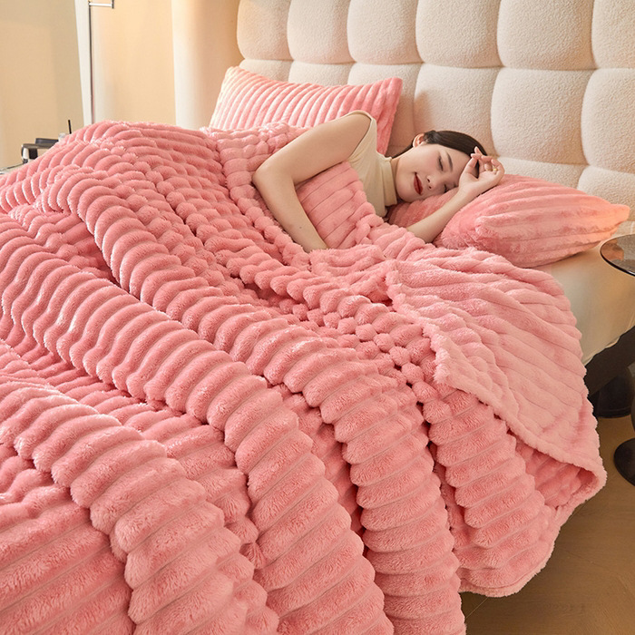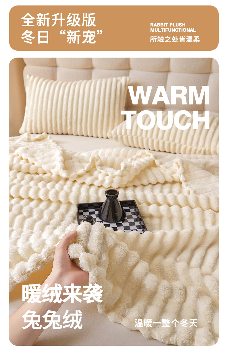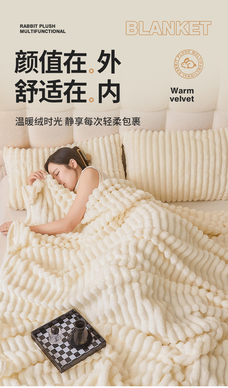 Трансграничное плюшевое одеяло с кроликом, утолщенное одеяло из молочного бархата, полосатое фланелевое одеяло с кондиционером, многофункциональное одеяло для сна, оптовая продажа