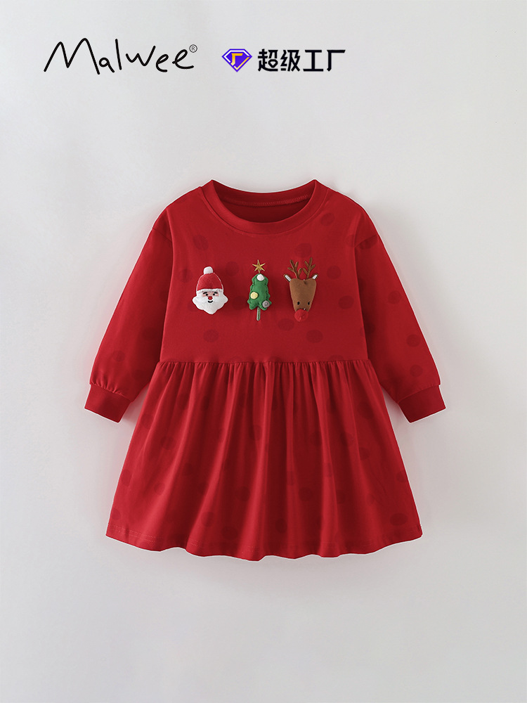 Трансграничное платье для девочек Malwee, осенне-зимнее новое европейское и американское детское платье принцессы с круглым вырезом и длинными рукавами, детская одежда