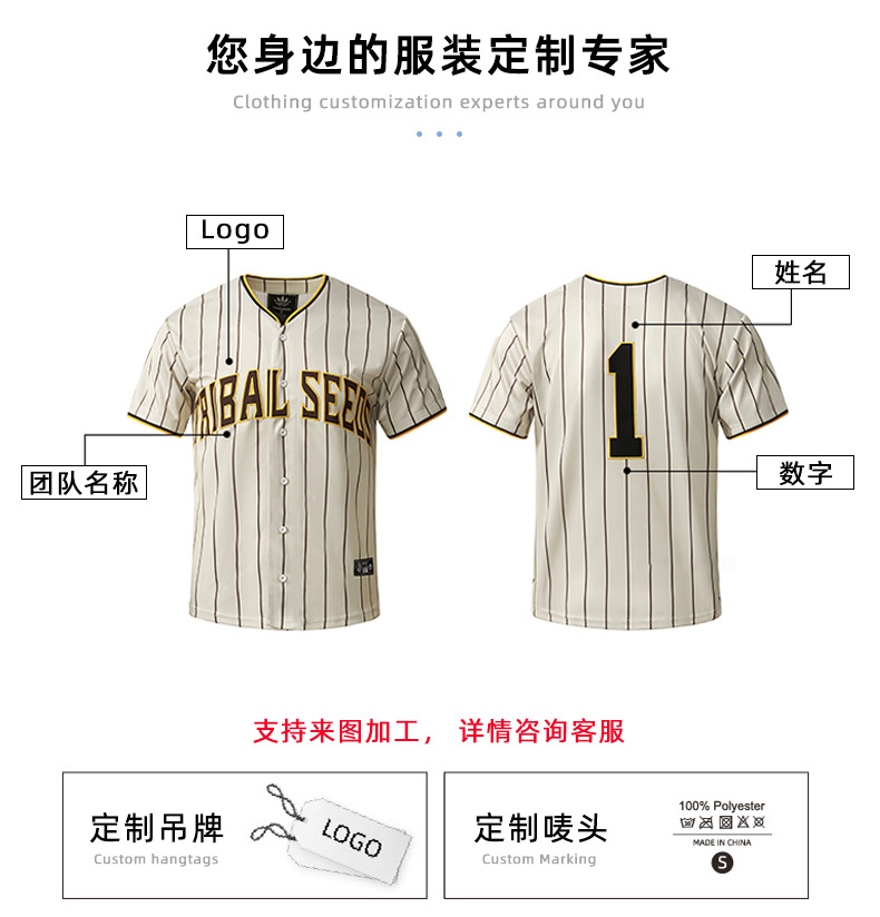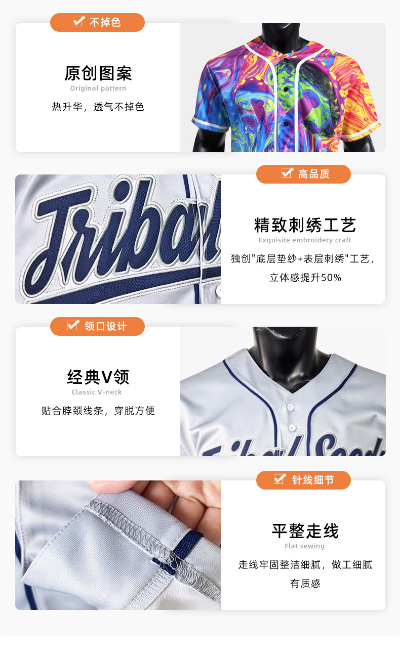 棒球服定制Baseball jersey数码印花开衫休闲纽扣球服短袖比赛衫