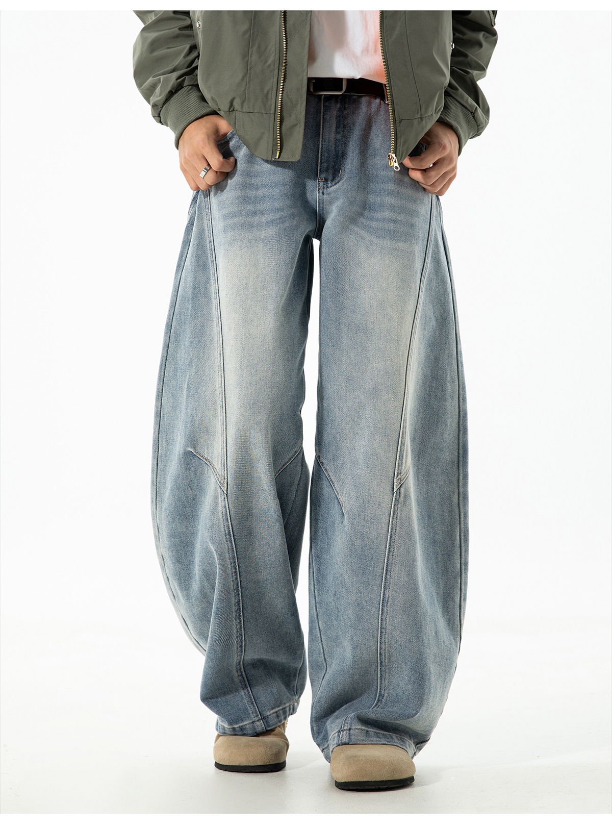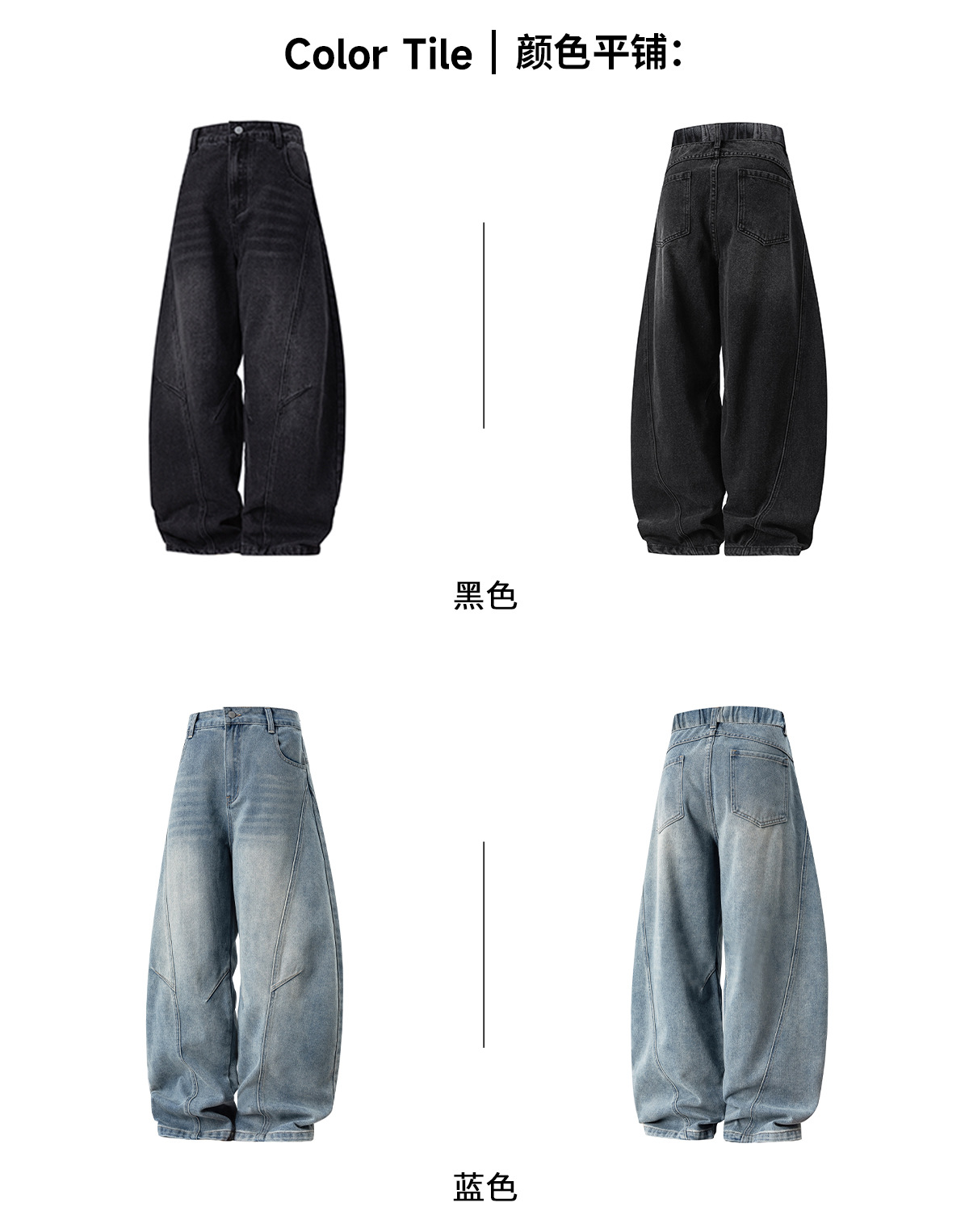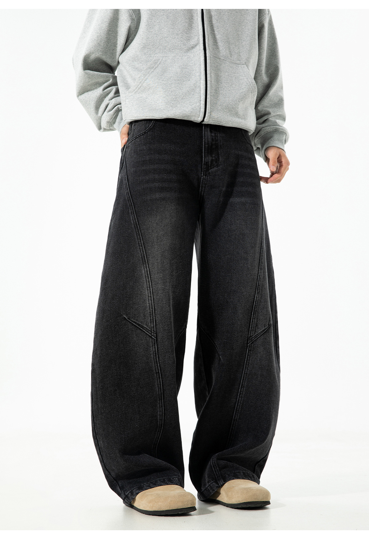 结构分割水洗做旧弯刀牛仔裤男秋季款廓形宽松潮牌复古直筒长裤子