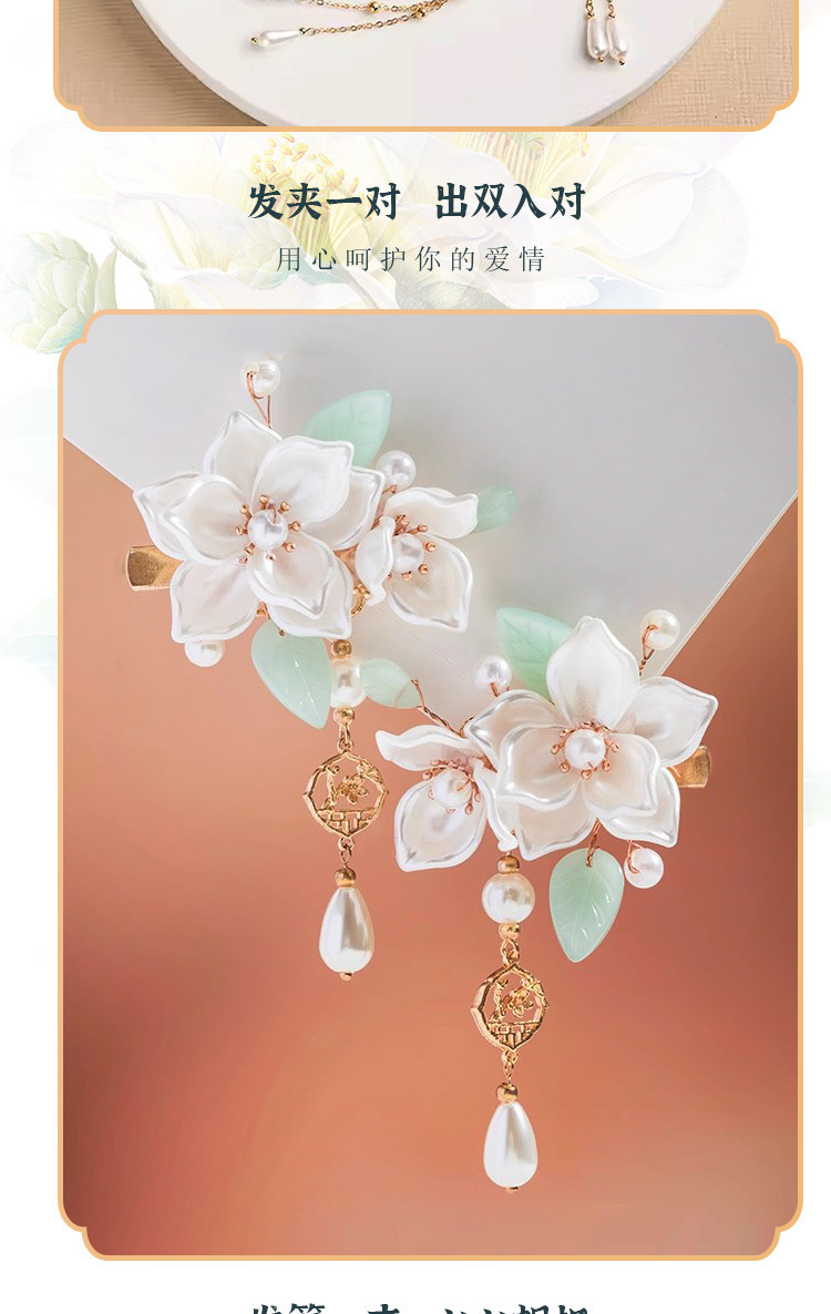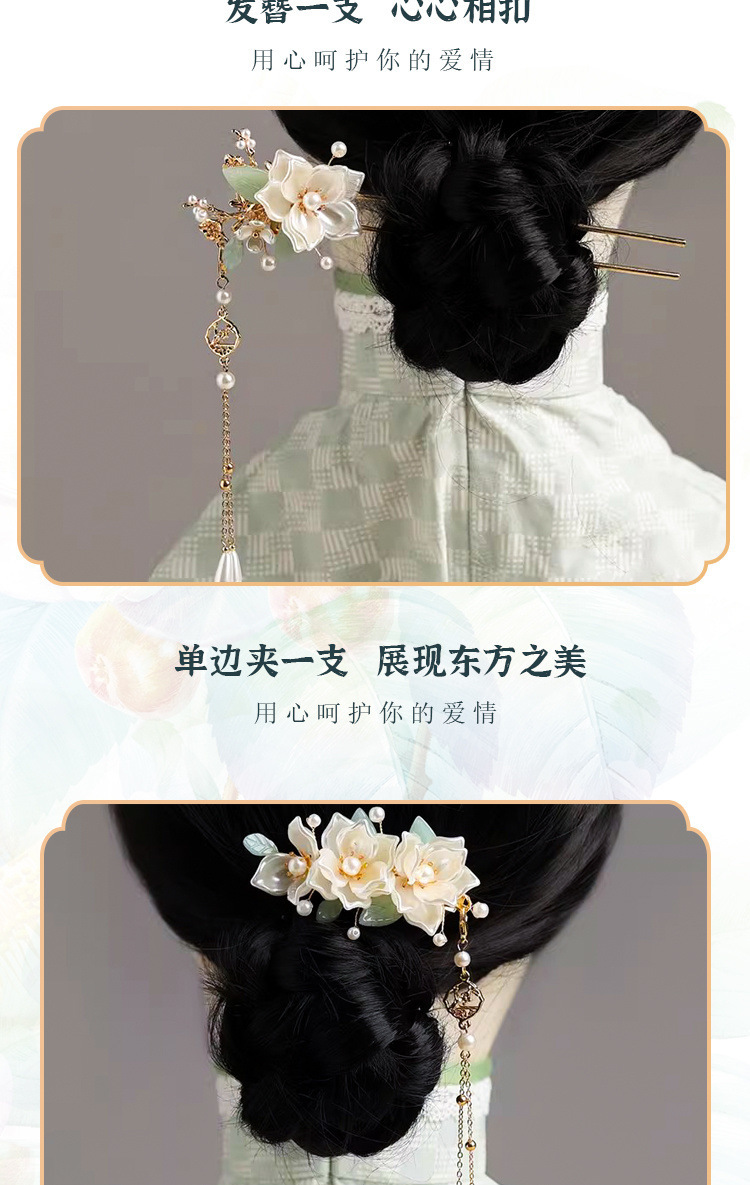 七夕节礼物山茶花汉服头饰古风装少女发簪套装发钗梳步摇边夹