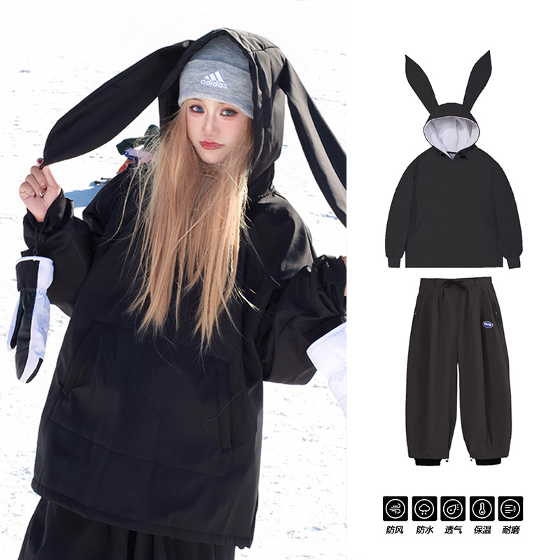 滑雪服套装滑雪服兔耳朵男女款单板防水加厚多色滑雪服裤装备套装