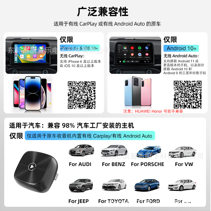 Портативная беспроводная коробка Carplay с горизонтальным рисунком, оригинальный автомобильный проводной и беспроводной простой конвертер