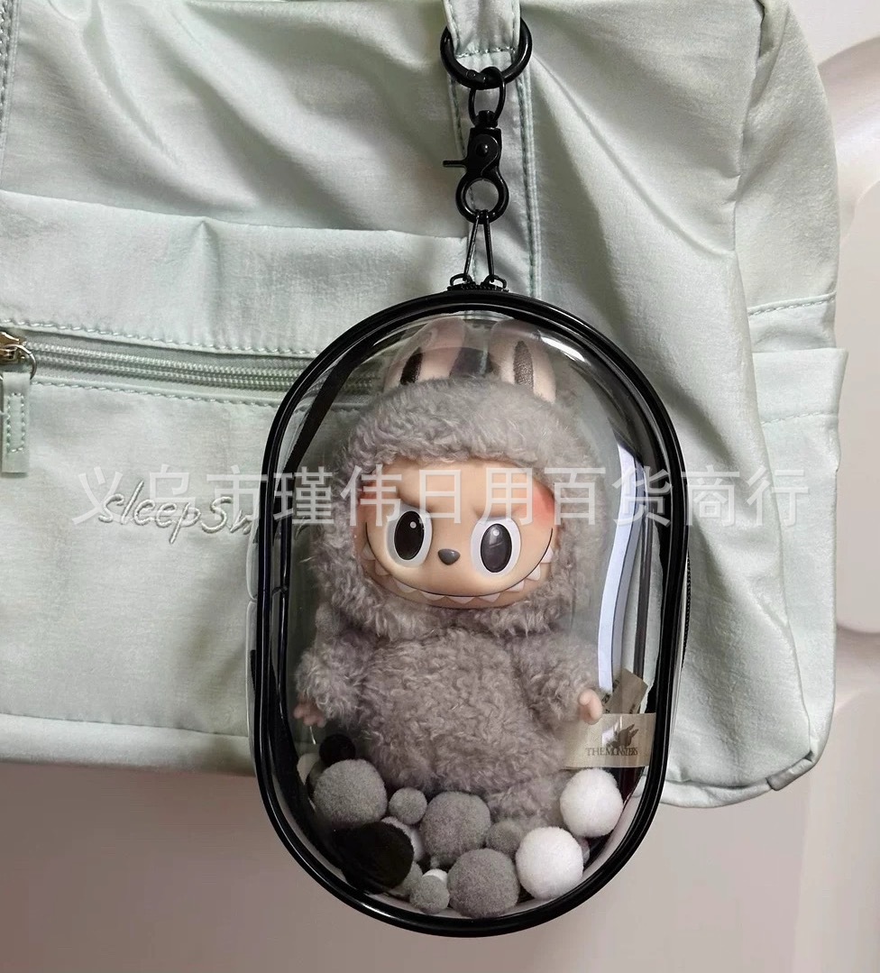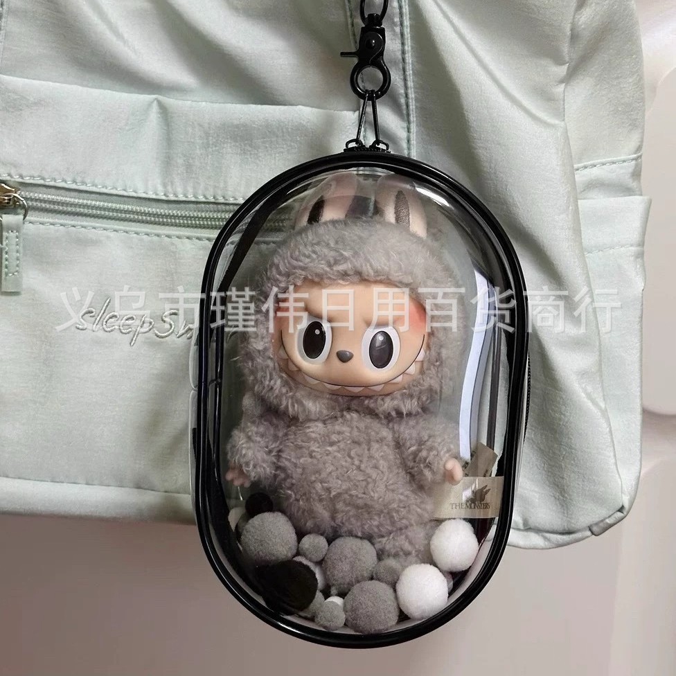 Хлопковая детская коляска Labubu, высокопрозрачная детская сумка, овальная 15 см, милая кукла, коляска, косметичка, пылезащитная подвесная сумка