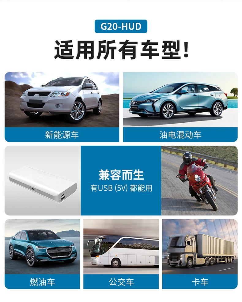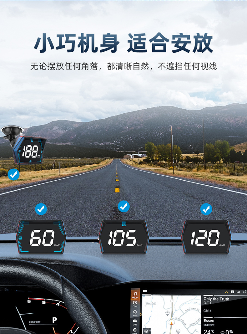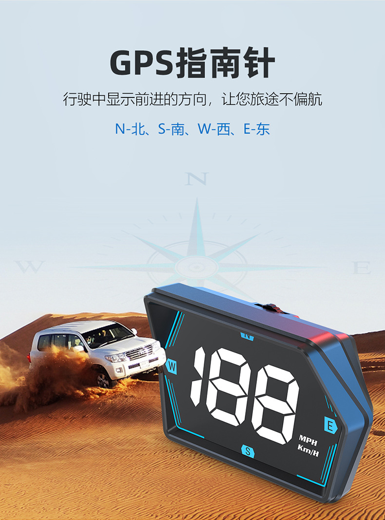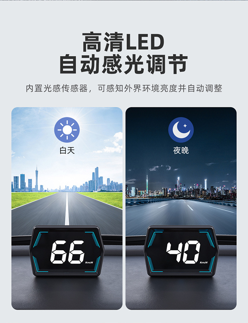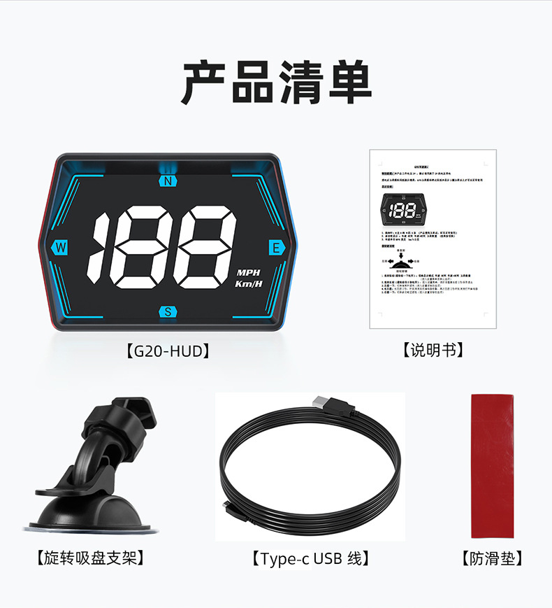 车载HUD抬头显示器G20汽车通用GPS多彩仪表氛围灯指南针时间