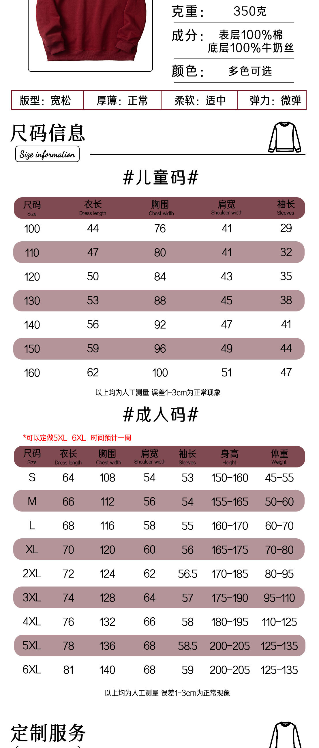 350克重纯棉宽松圆领卫衣潮款长袖亲子款跨境欧码套头衫秋冬印图