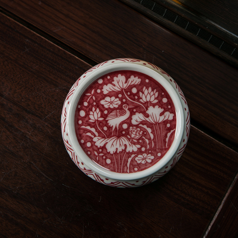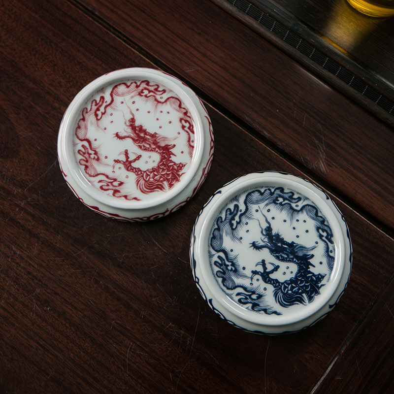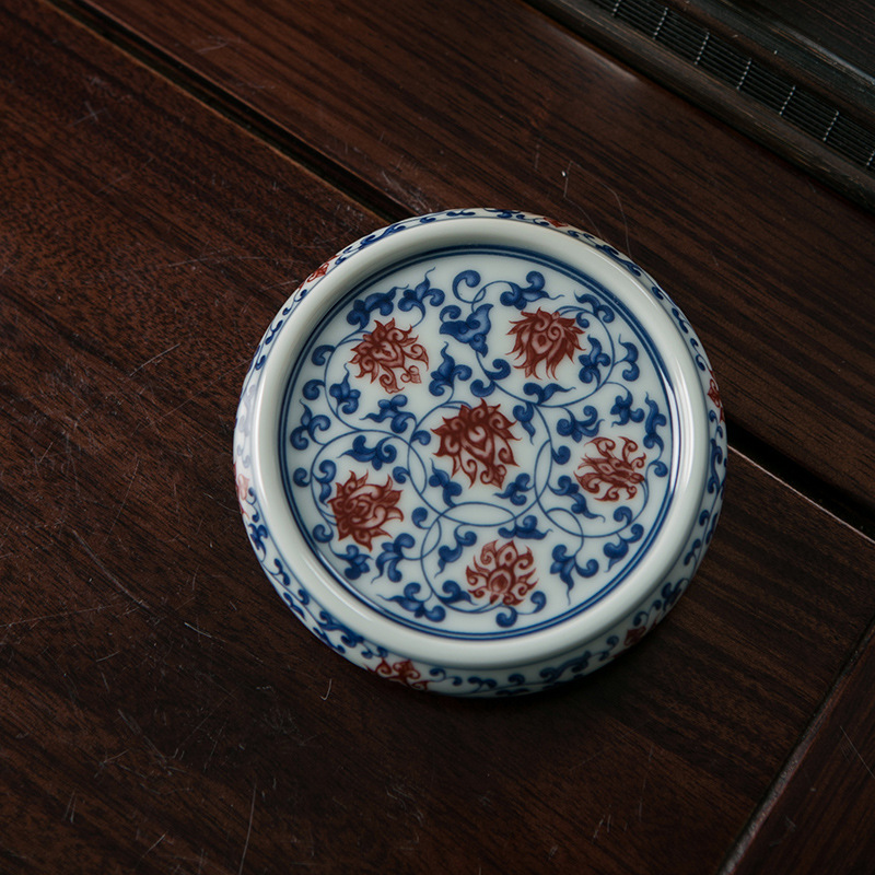Покрытие из фарфоровой глины доставляет удовольствие для глаз.; Фарфоровая глина, покрытая красным цветком лотоса; Фарфоровая глина, покрытая подглазурной краской красного цвета.; Фарфоровая глина, покрытая рыбьими и красными цветами дракона.; Фарфоровая глина, покрытая рыбой и драконом синего и белого цвета.; Юаньлун, покрытый фарфоровой глиной