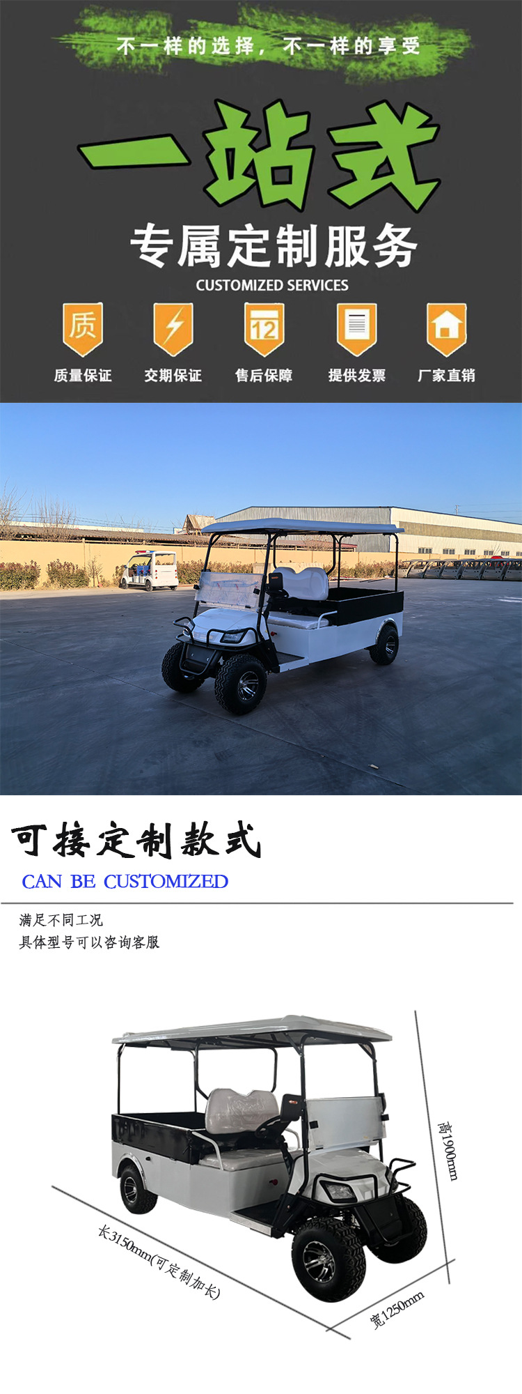 电动高尔夫球车带斗拉货四轮摆渡车球场景区物业代步平板货斗车