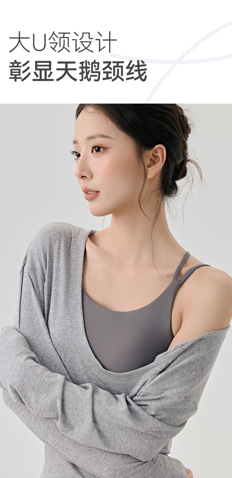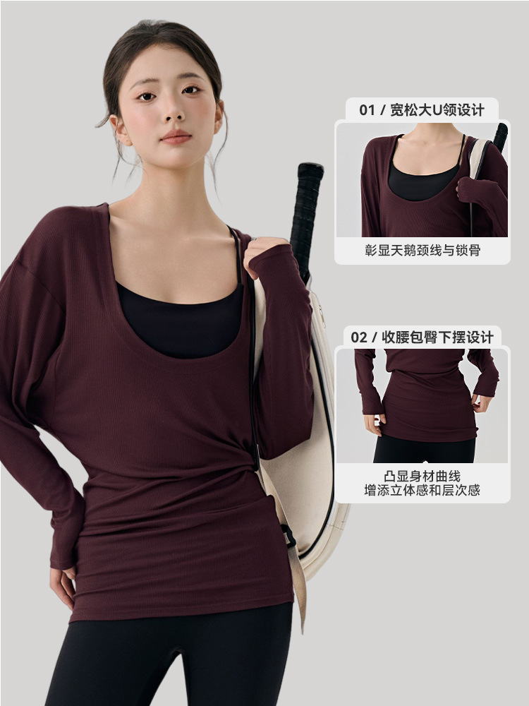 大U领运动罩衫女遮屁股慵懒宽松休闲普拉提蝙蝠袖长袖瑜伽服上衣