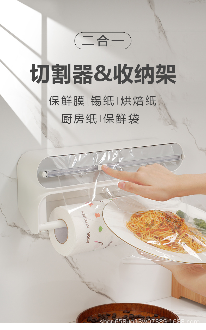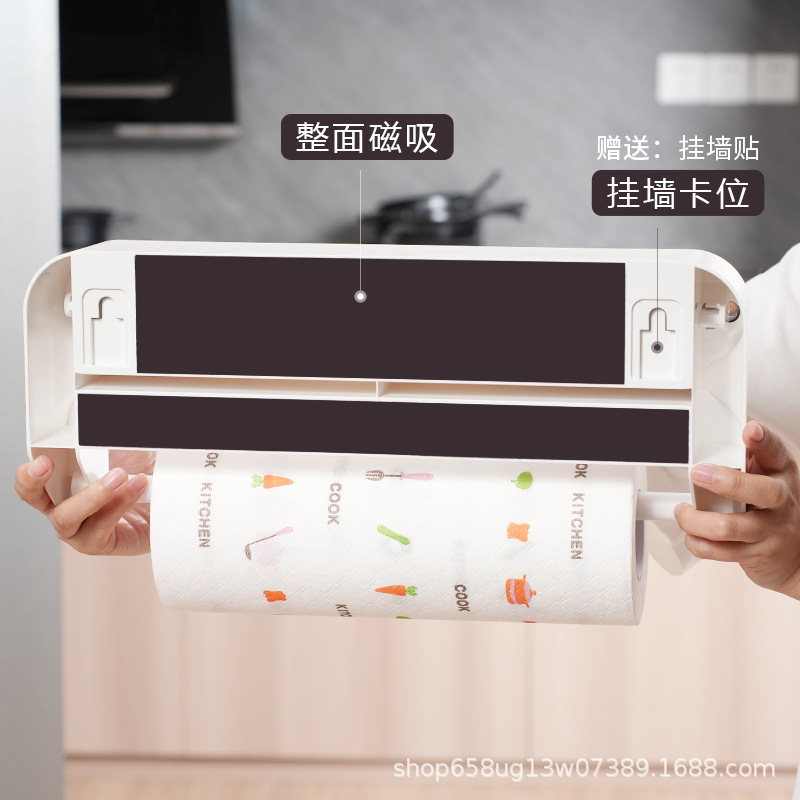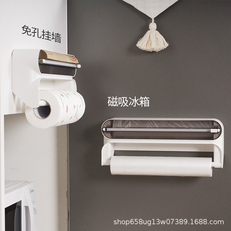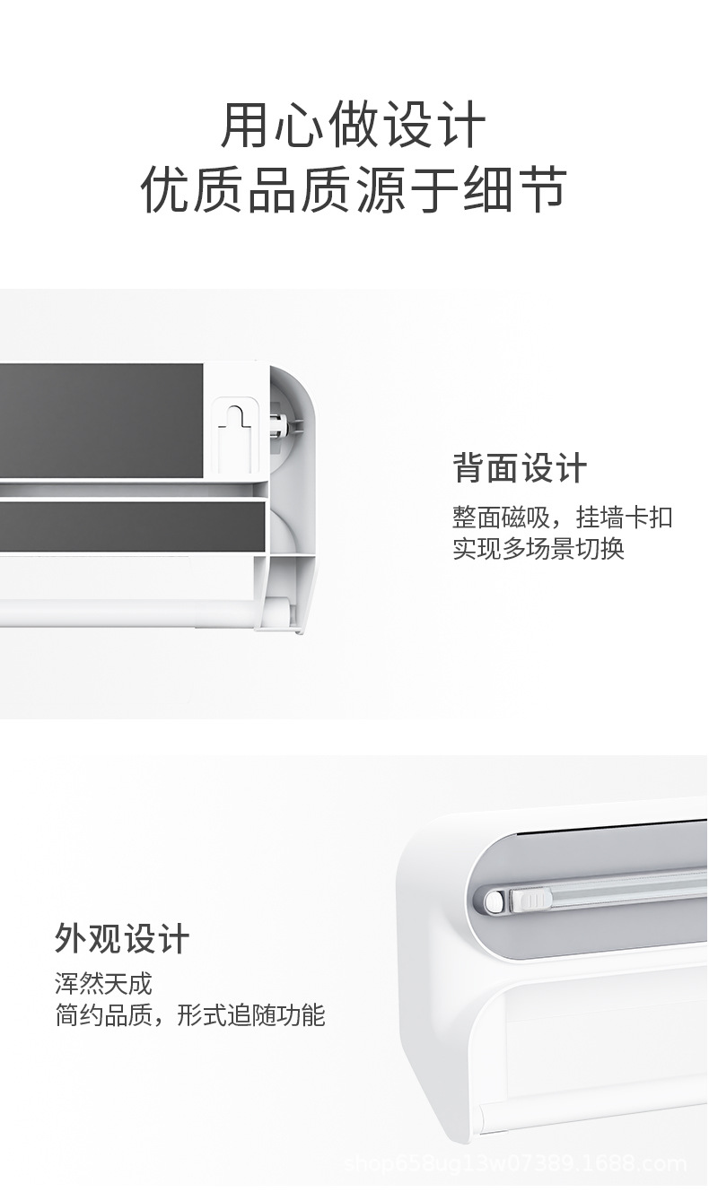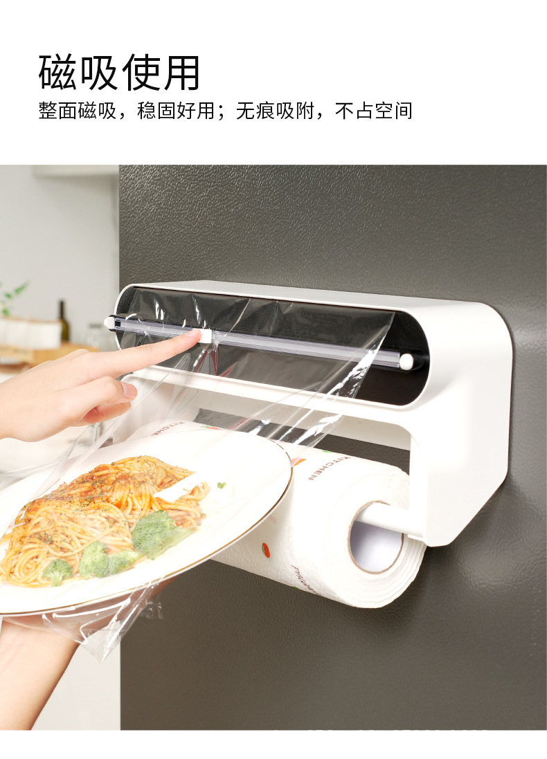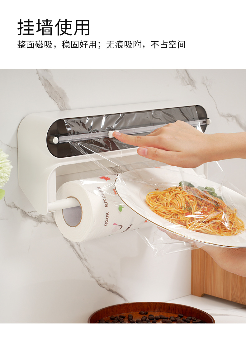 二合一保鲜膜切割器磁吸挂墙两用厨房纸收纳架锡纸烘焙纸保鲜袋架