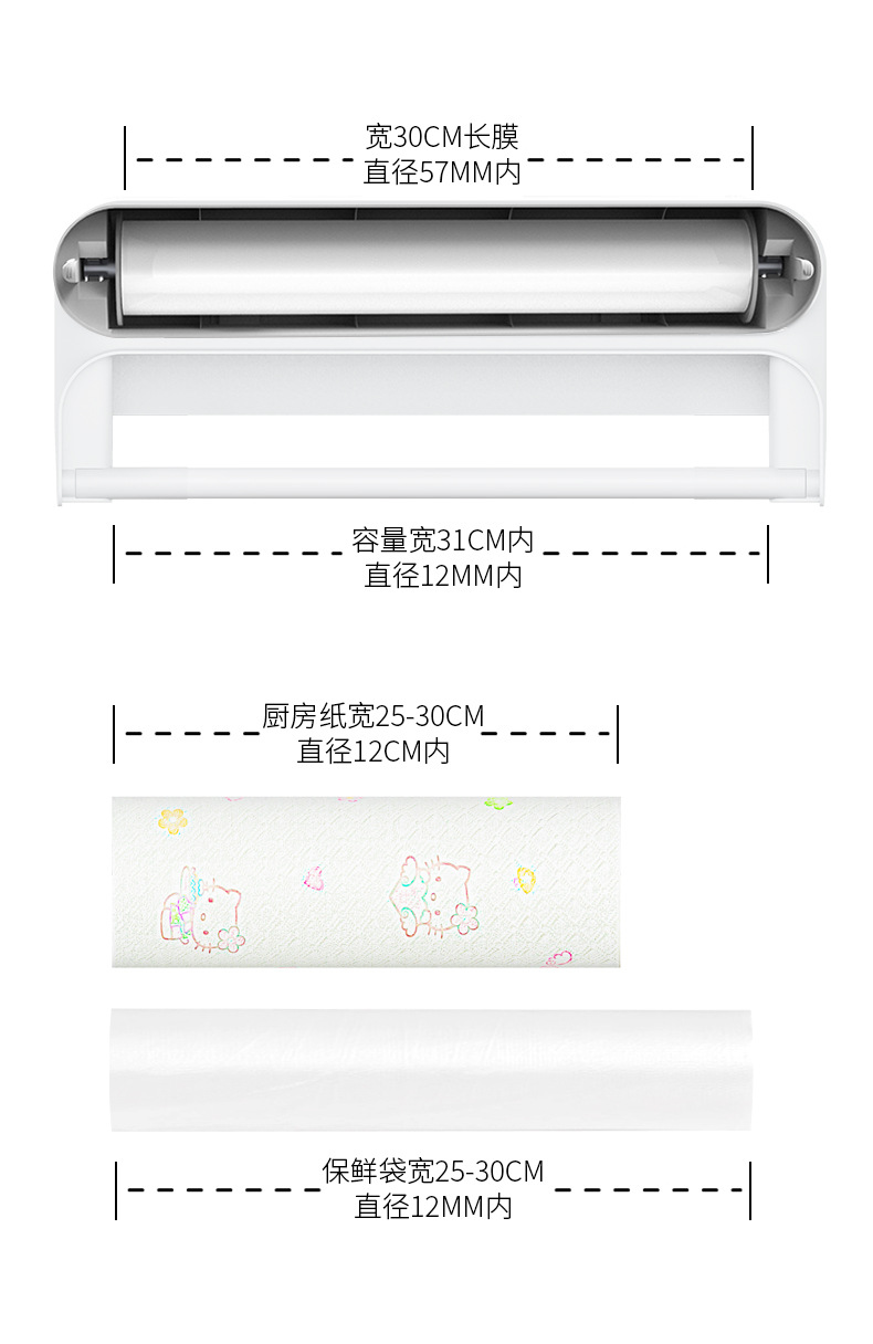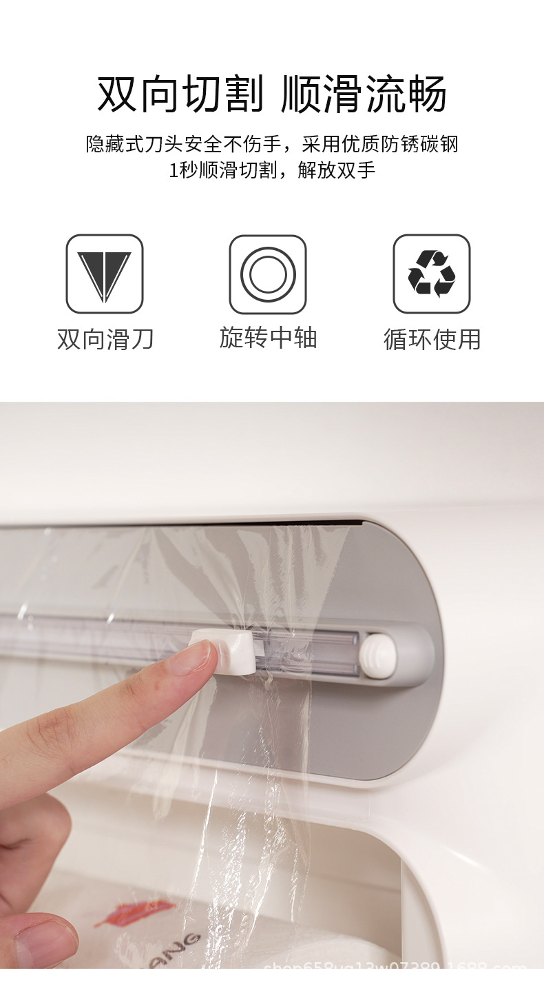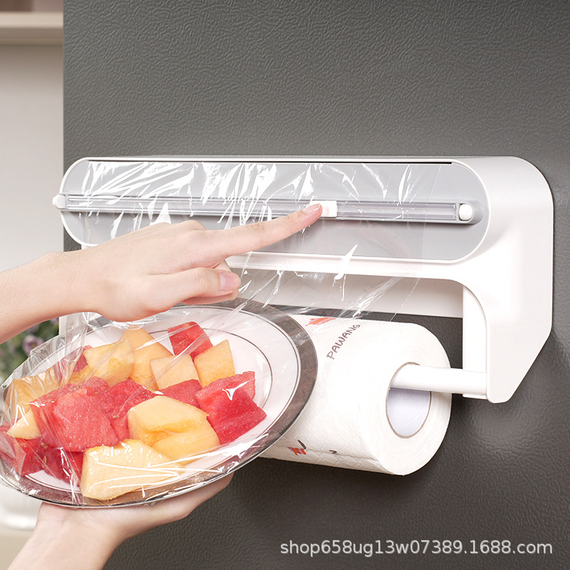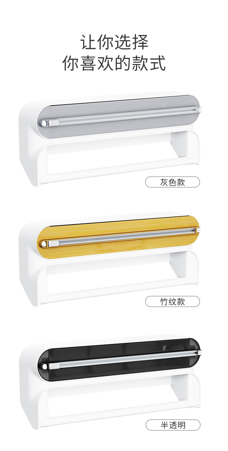 二合一保鲜膜切割器磁吸挂墙两用厨房纸收纳架锡纸烘焙纸保鲜袋架